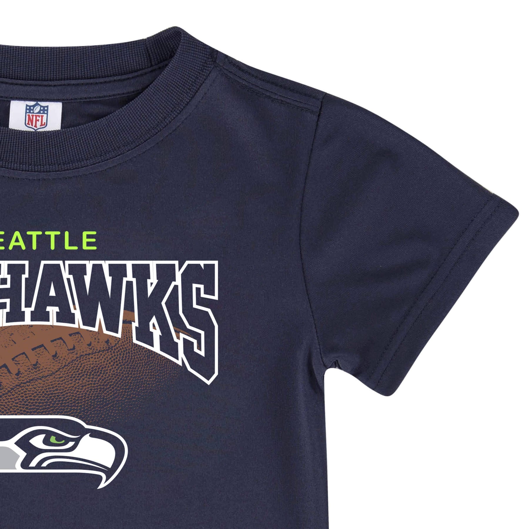 Come on, Seahawks! Get the smallest family members ready to cheer with our officially licensed NFL toddler tees. This product contains Repreve® polyester made from recycled plastic bottles (or recycled content). Products made with Repreve help to conserve energy and natural resources. And, gives you another great reason to recycle. The tee features a comfy, casual crew neck to keep your little one comfortable throughout the entirety of the game (and the whole day long!). The screen print team logo is bright and bold and is featured front and center on the t-shirt. It’s the perfect tee for warm game days and cool games days, as it may be worn comfortably all on its own or layered over to keep warm. This t-shirt is machine washable to take care of any game-time spills.