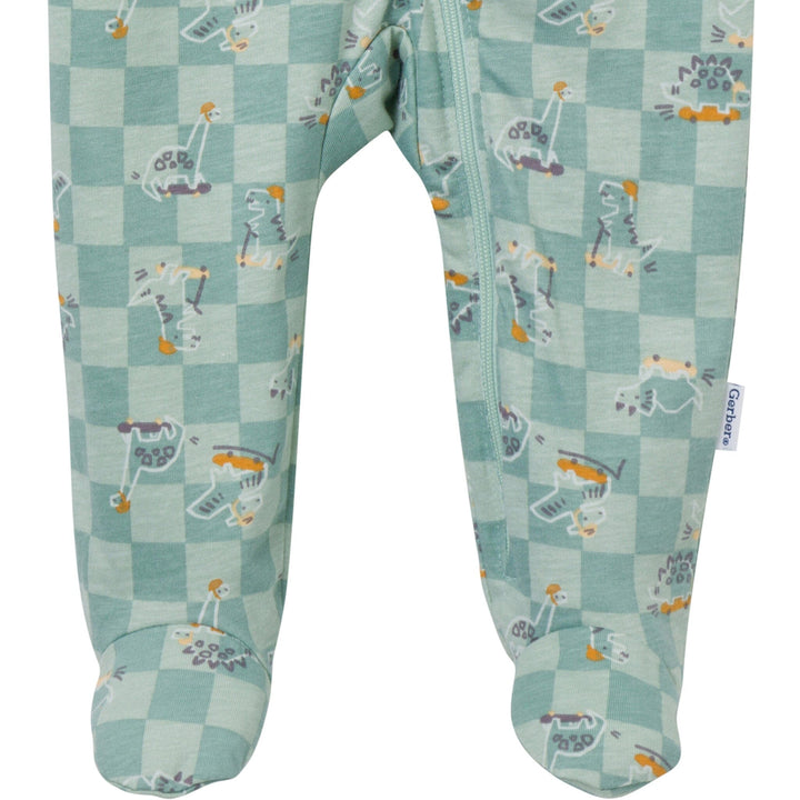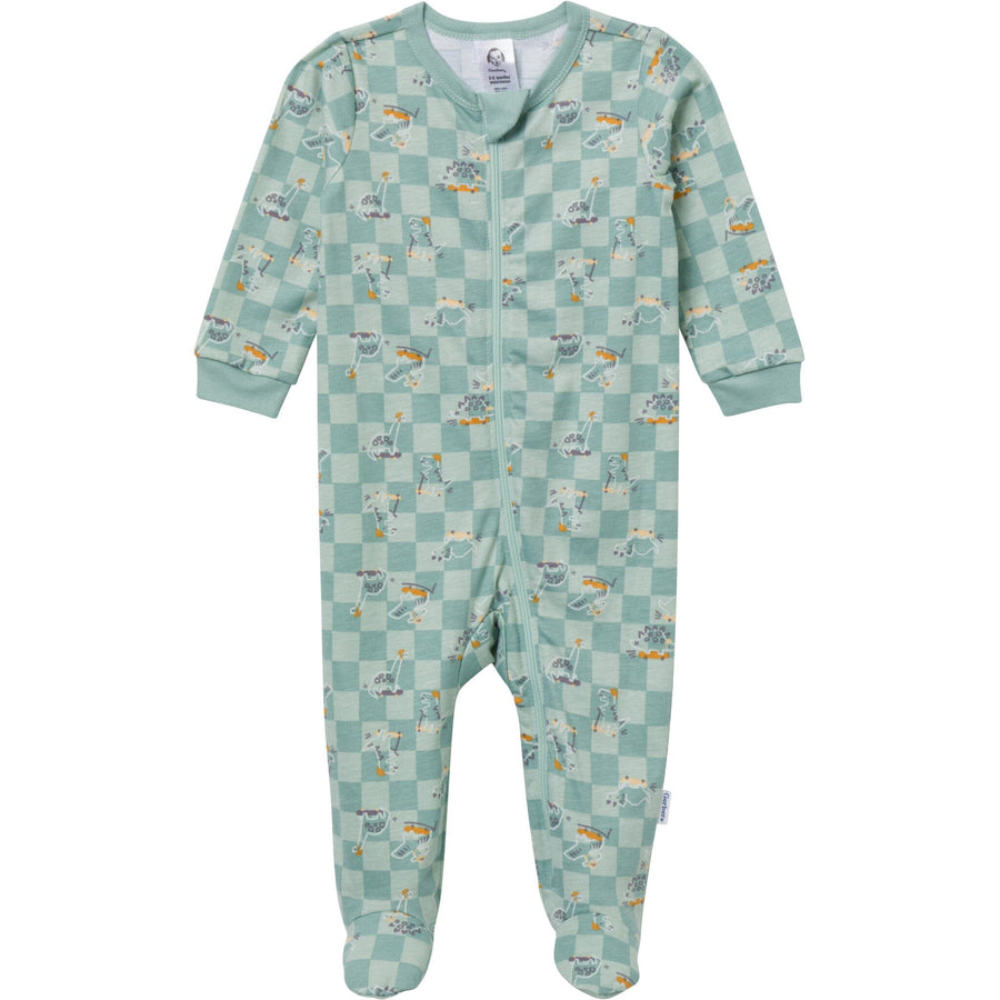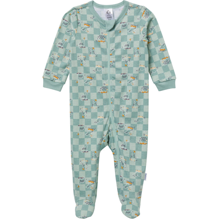 Your little dino lover will stay cozy and stylish in this adorable Sleep 'N Play! With a playful skateboarding dinosaur print on a cool blue checkboard background, it brings fun to every snuggle. Made from 100% soft cotton, it’s gentle on delicate skin, and the footed design keeps those tiny toes warm. The full-length zipper makes dressing and diaper changes a breeze, while the rounded collar and protective zipper tab help prevent irritation. Perfect for sleep, play, and everything in between. Our essentials have been independently certified with STANDARD 100 by OEKO-TEX® so that you don’t have to worry about harmful substances in your little one's wardrobe. Includes one Sleep 'N Play.
