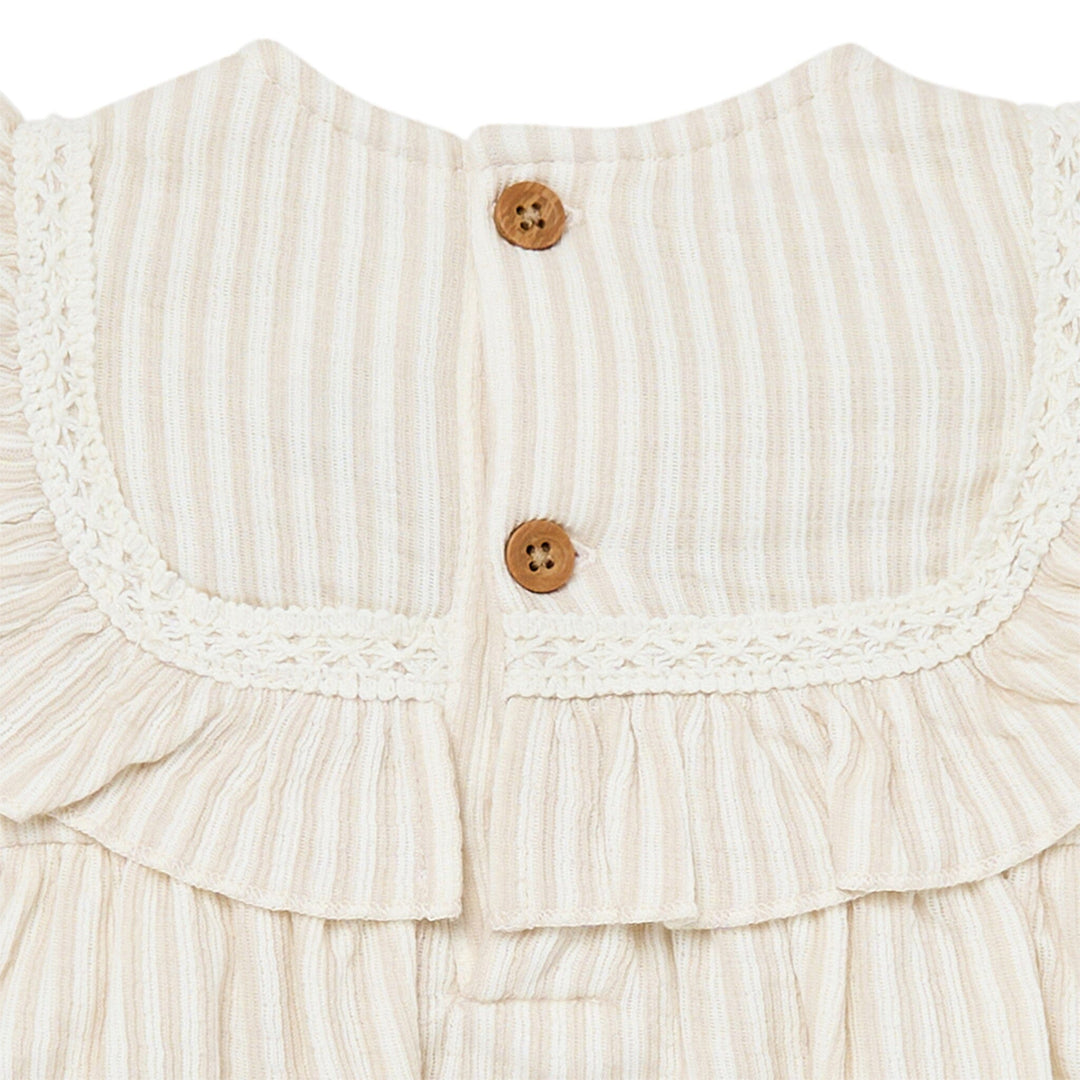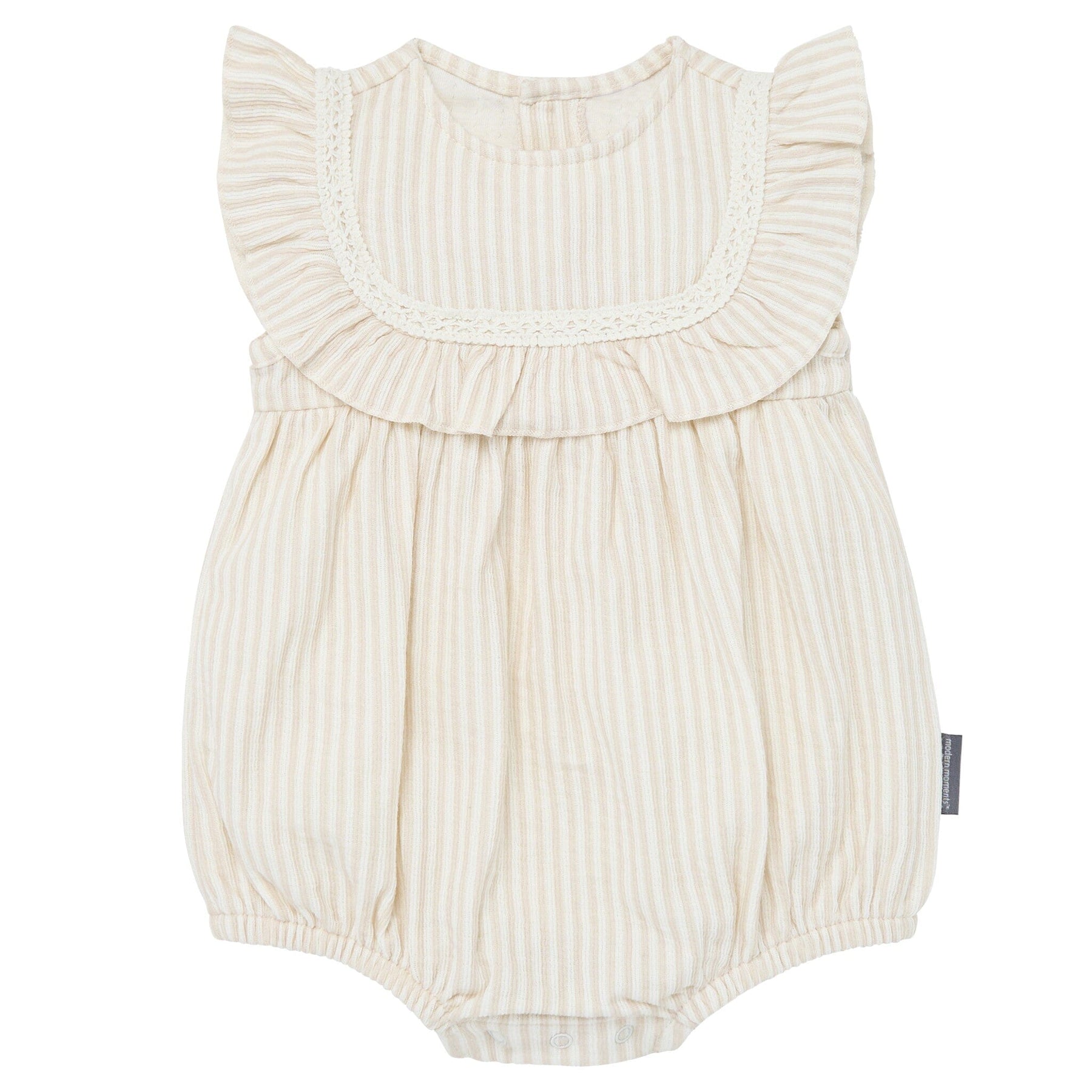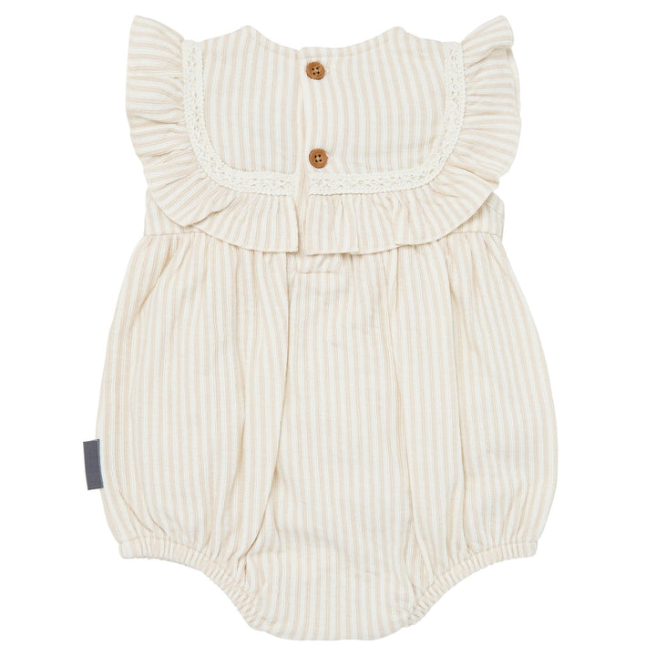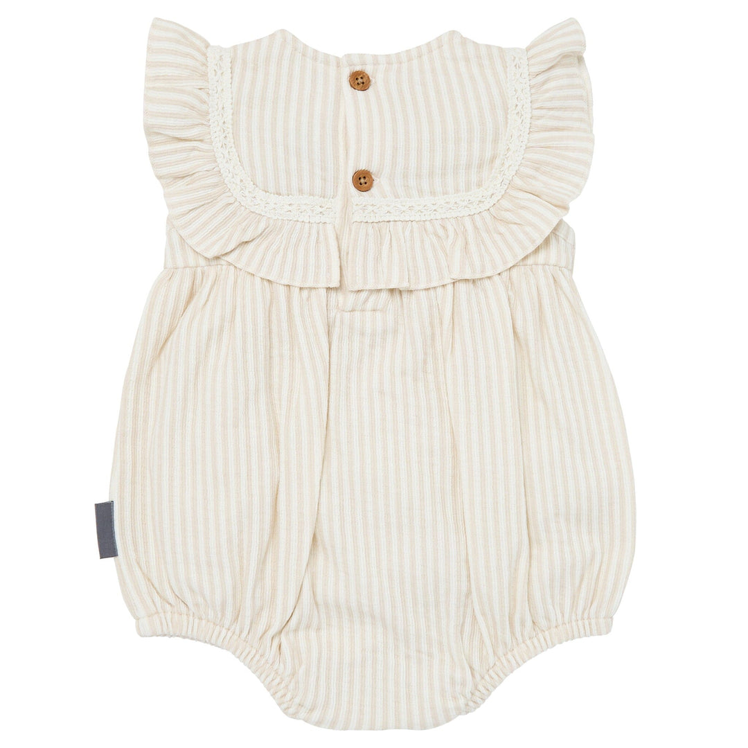 Baby Girls Light Taupe Stripe Ruffle Bubble Romper