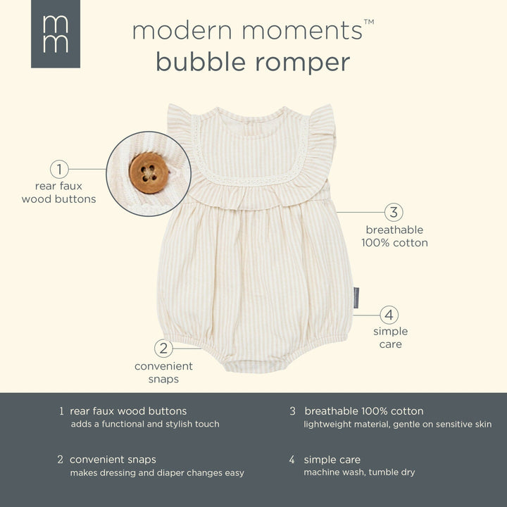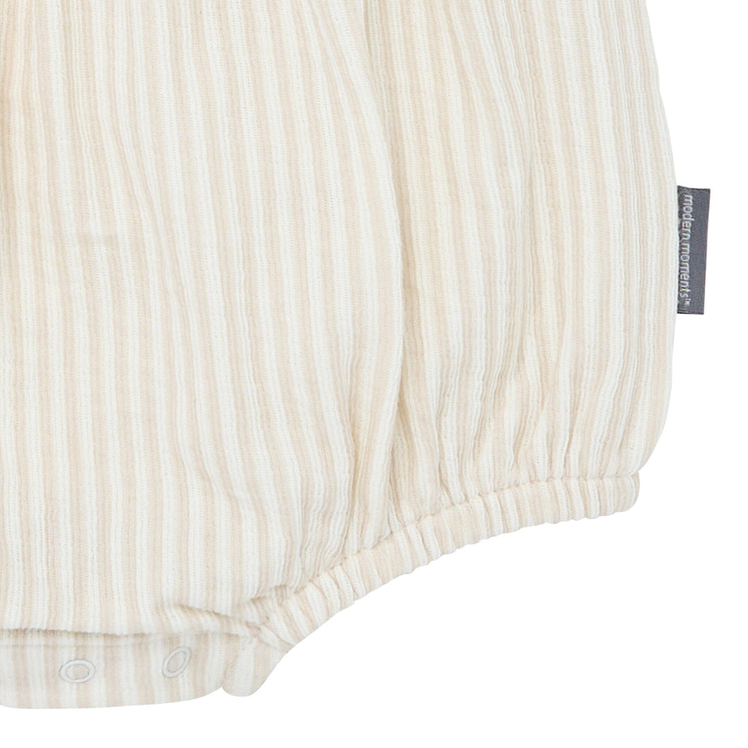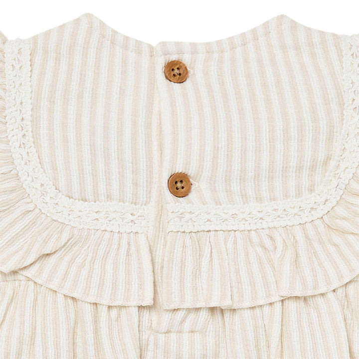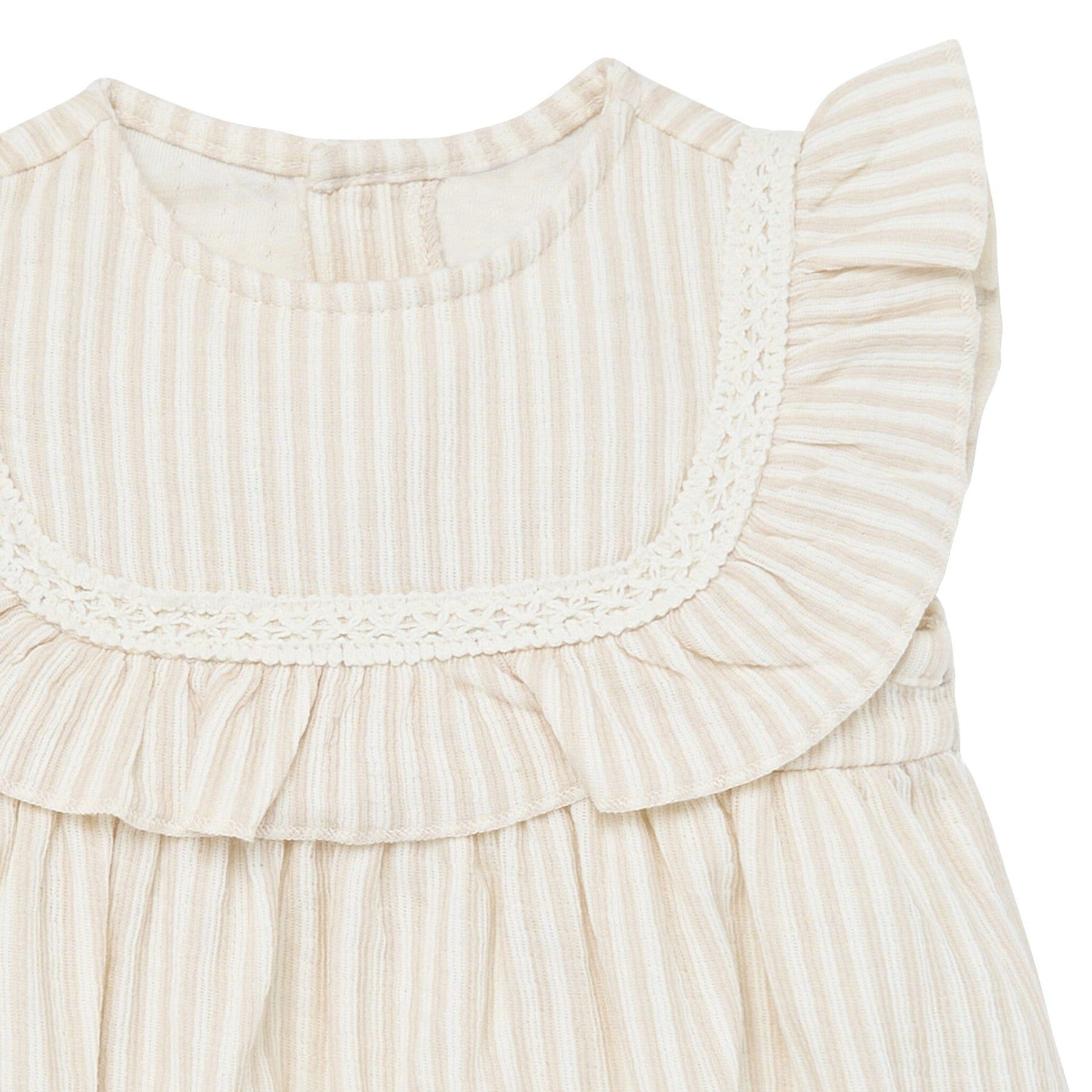 Baby Girls Light Taupe Stripe Ruffle Bubble Romper