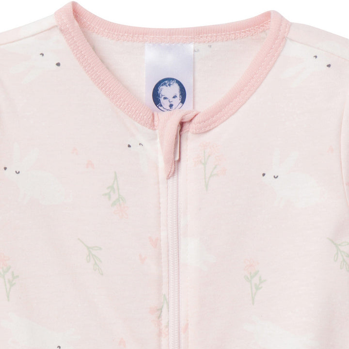 Get your little one ready for sweet dreams in our pink Sleep 'N Play featuring cute bounding bunnies. Made from 100% cotton, it's soft and gentle on your baby's sensitive skin. The full-length zipper with neckline protector makes dressing and diaper changes simple, while the ribbed cuffs and neckline ensure a secure, comfy fit and the cozy footie style keeps tiny toes warm and snug. Perfect for bedtime or playtime, this charming Sleep 'N Play is sure to be a favorite in your baby's wardrobe. Our essentials have been independently certified with STANDARD 100 by OEKO-TEX® so that you don’t have to worry about harmful substances in your baby’s wardrobe. This pack includes 1 Sleep 'N Play.