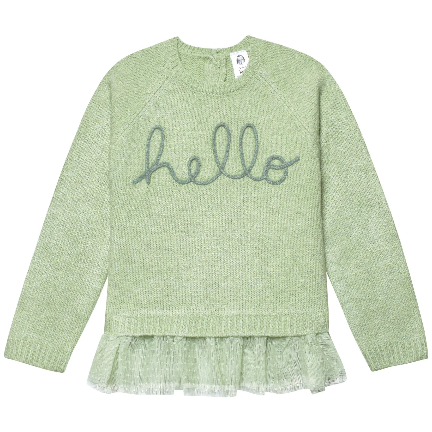 Infant & Toddler Girls Green Sweater With Tulle Trim