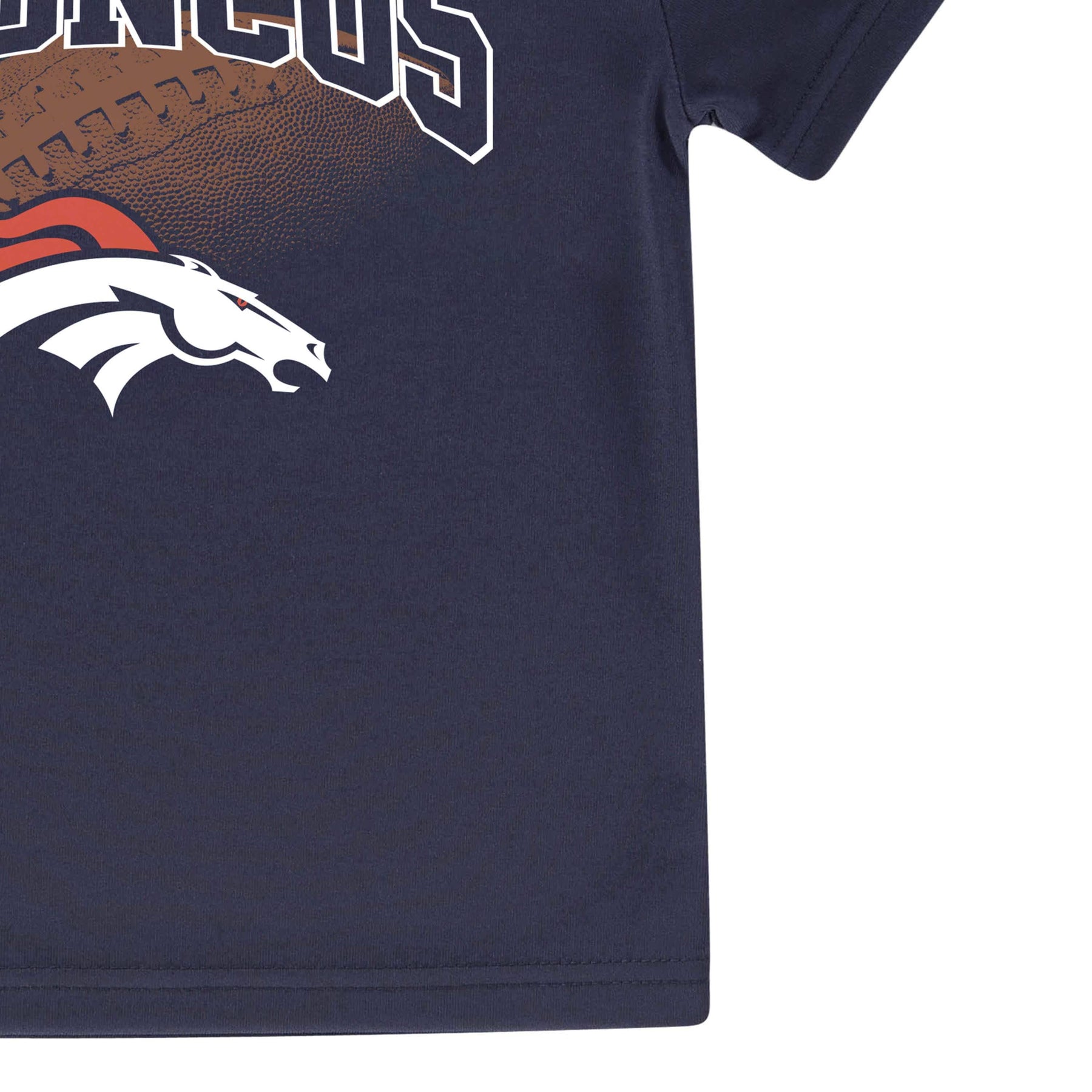 Come on, Broncos! Get the smallest family members ready to cheer with our officially licensed NFL baby tees. This product contains Repreve® polyester made from recycled plastic bottles (or recycled content). Products made with Repreve help to conserve energy and natural resources. And, gives you another great reason to recycle. The tee features a comfy, casual crew neck to keep your little one comfortable throughout the entirety of the game (and the whole day long!). The screen print team logo is bright and bold and is featured front and center on the t-shirt. It’s the perfect tee for warm game days and cool games days, as it may be worn comfortably all on its own or layered over to keep warm. This t-shirt is machine washable to take care of any game-time spills.