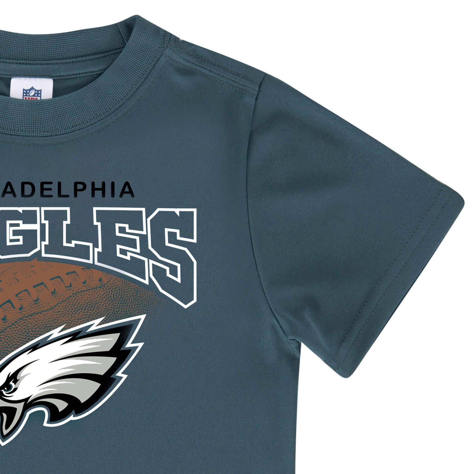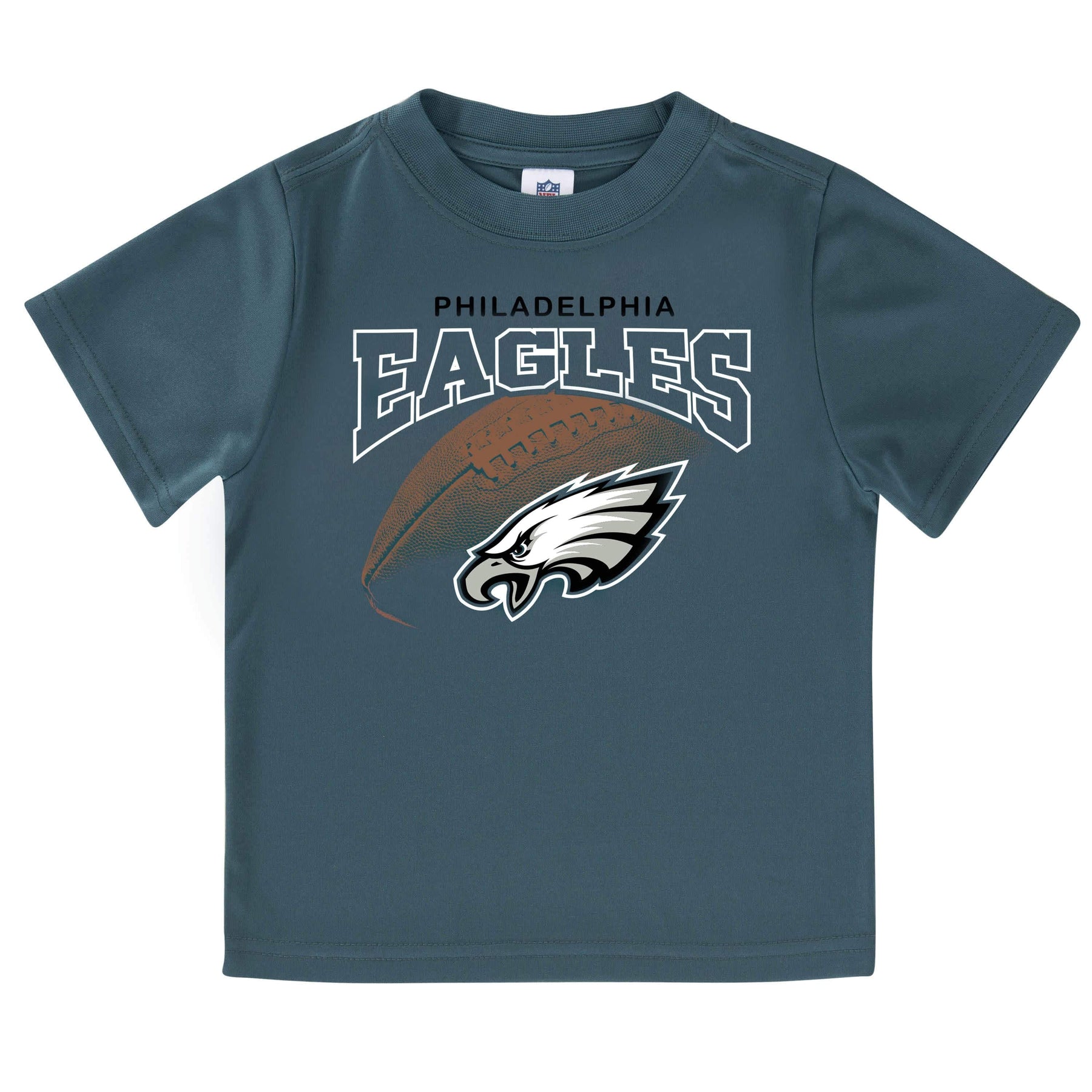 Come on, Eagles! Get the smallest family members ready to cheer with our officially licensed NFL toddler tees. This product contains Repreve® polyester made from recycled plastic bottles (or recycled content). Products made with Repreve help to conserve energy and natural resources. And, gives you another great reason to recycle. The tee features a comfy, casual crew neck to keep your little one comfortable throughout the entirety of the game (and the whole day long!). The screen print team logo is bright and bold and is featured front and center on the t-shirt. It’s the perfect tee for warm game days and cool games days, as it may be worn comfortably all on its own or layered over to keep warm. This t-shirt is machine washable to take care of any game-time spills.