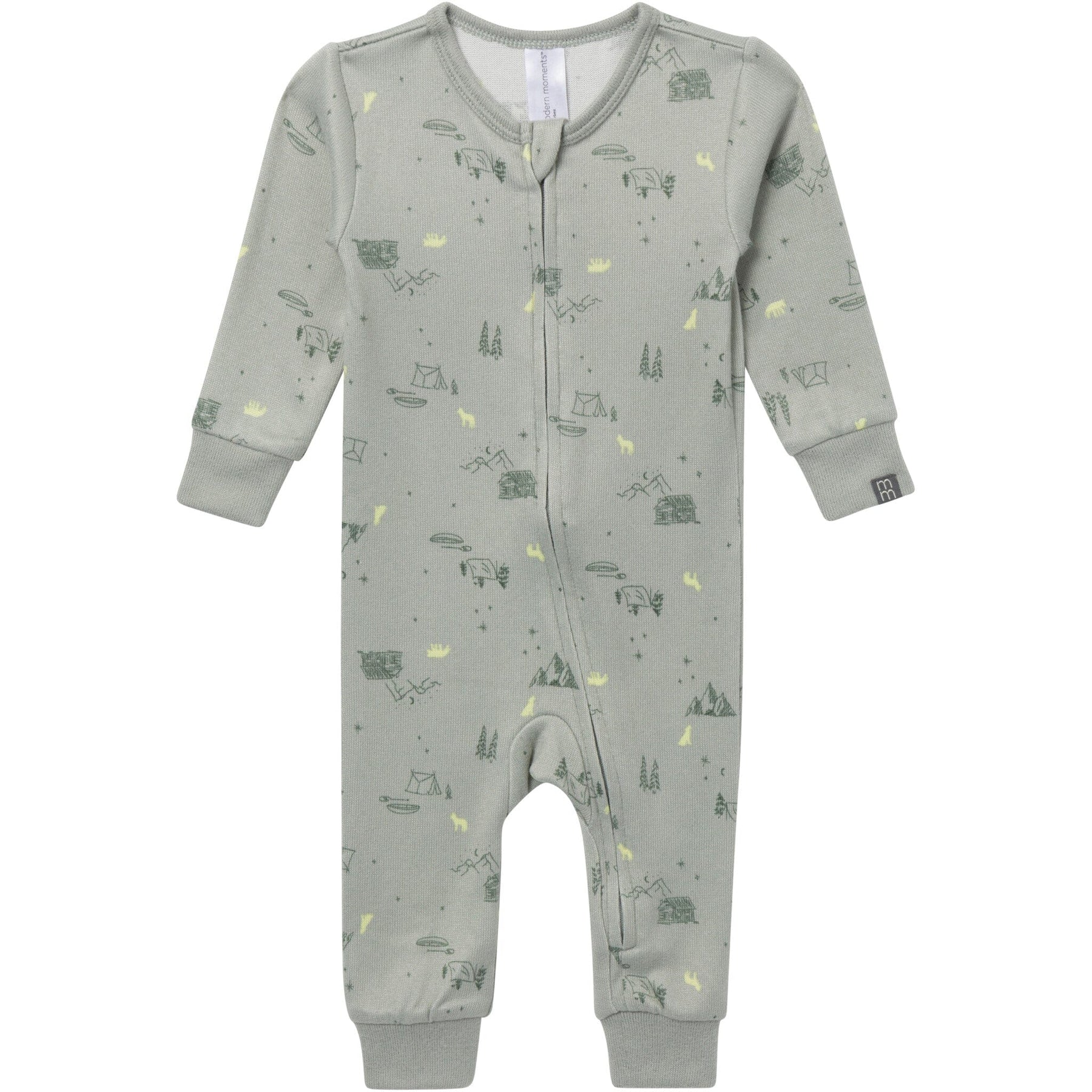 These light gray pajamas bring the peaceful feel of the great outdoors to bedtime. Made from exceptionally soft and stretchy hacci fabric, they offer breathable comfort that keeps up with every wiggle and dream. A full-length zipper with a protective neckline cover makes for easy changes, while cinched wrists and ankles help hold in warmth. Finished with a rounded neckline and a serene evergreen tree and mountain print, this one-piece is perfect for cozy nights and chilly mornings. Our essentials have been independently certified with STANDARD 100 by OEKO-TEX® so that you don’t have to worry about harmful substances in your little one's wardrobe. Pack includes one pair of pajamas from modern moments™ by Gerber®.