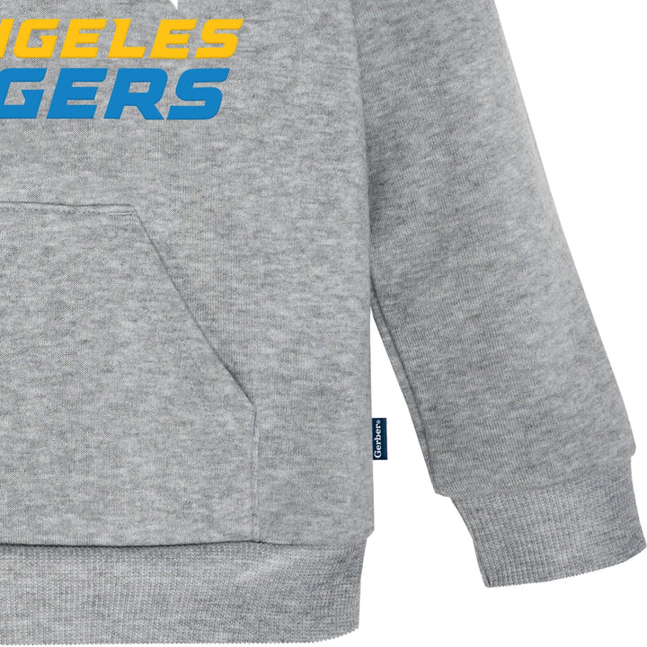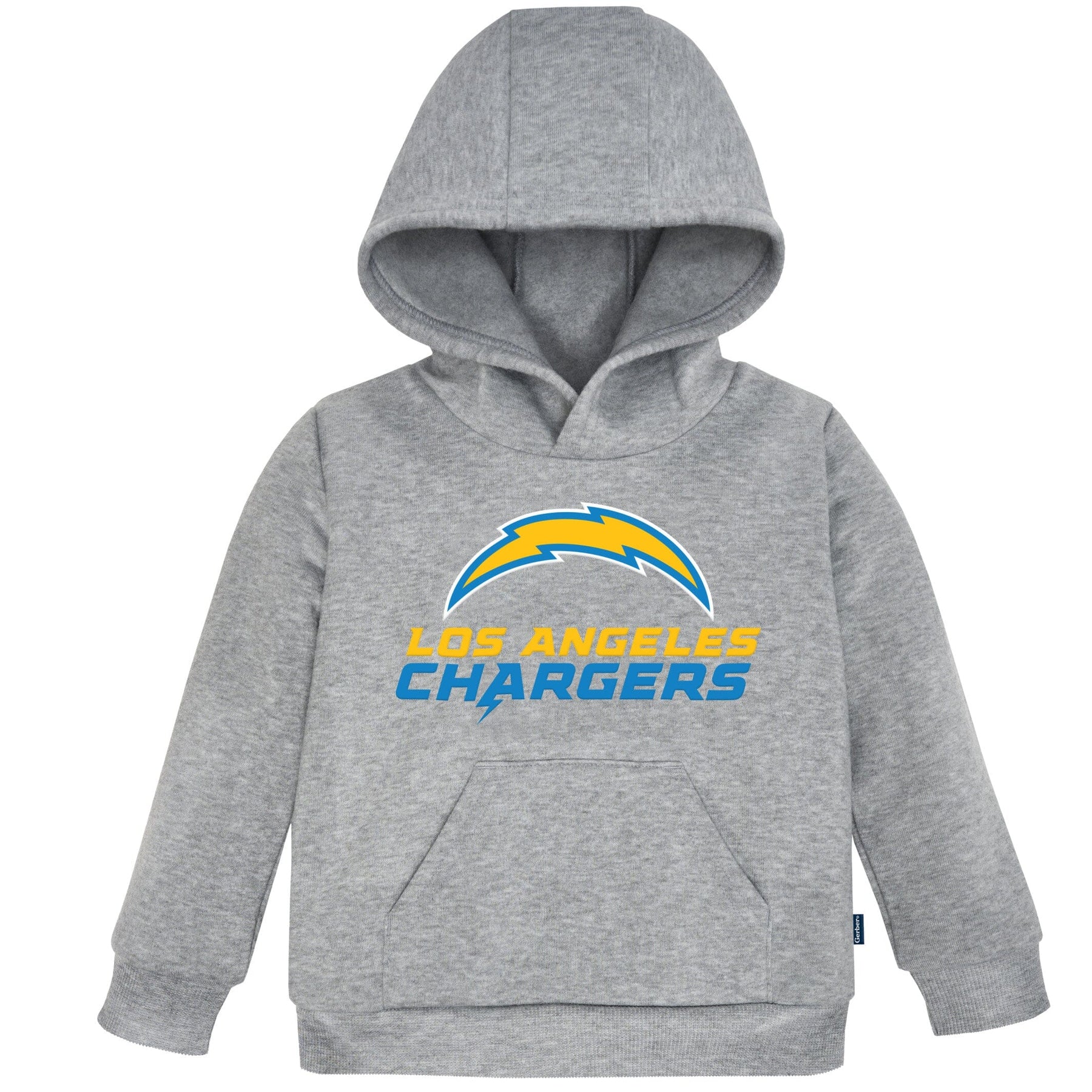 Even the smallest family members can get in the football spirit with our officially licensed Los Angeles Chargers Hoodie. This hoodie is made to keep your little one comfortable throughout the entirety of the game or while playing with friends. Featuring an applique team name and logo front and center, cuffed sleeves and banded bottom, this is the perfect hoodie for infants and toddlers, as it may be worn comfortably all on its own or layered with a shirt for extra warmth. The hoodie also has a functional front pocket to keep those hands warm when it's a little chilly outside. This NFL by Gerber Chargers team hoodie is machine washable to take care of any game-time spills with the utmost ease and convenience. Our essentials have been independently certified with STANDARD 100 by OEKO-TEX® so that you don’t have to worry about harmful substances in your little one's wardrobe.