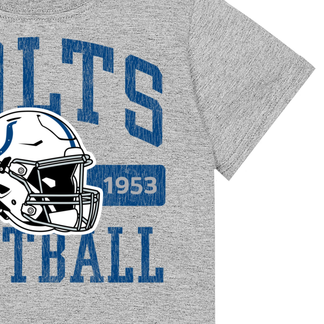 This officially licensed Indianapolis Colts Short Sleeve Tee will help your little football fan show his or her team spirit on game day or any other day of the week! The cotton/poly blend short sleeve tee features a comfy, casual crew neck that will make this tee one of your little fans' favorites. The screen print team logo and helmet is bold and is featured front and center on the t-shirt. It’s the perfect tee for both warm game days and cool game days, as it may be worn comfortably all on its own or layered over to keep warm. This Colts t-shirt is machine washable to take care of any game-time spills. Our essentials have been independently certified with STANDARD 100 by OEKO-TEX® so that you don’t have to worry about harmful substances in your little one's wardrobe.