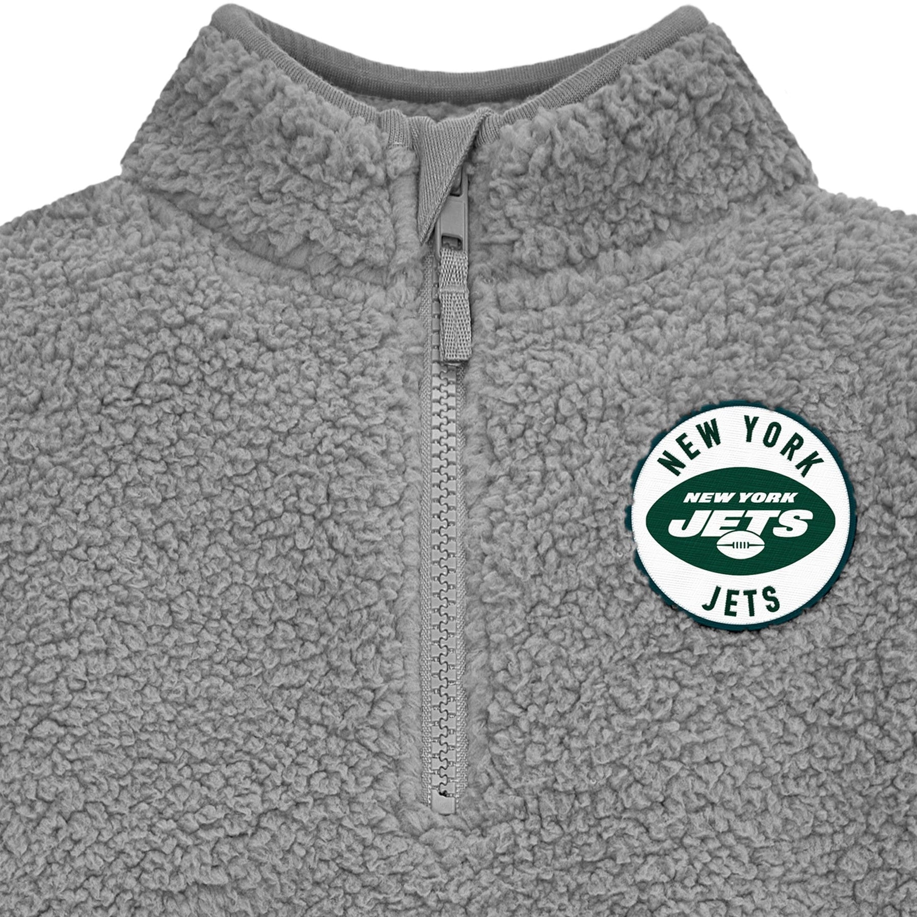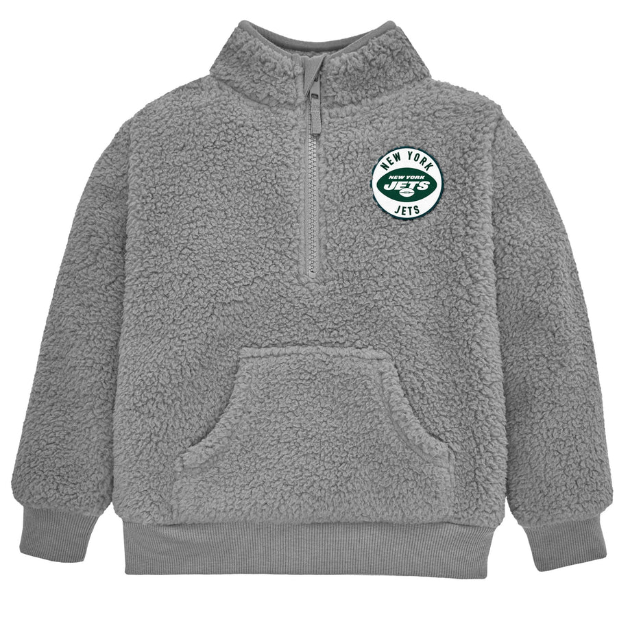 Your little one will be ready to cheer for their team with this comfy officially licensed New York Jets 1/4 Zip Sherpa Top. The top features a quarter zip neckline for easy on and off and the sherpa body is made to keep your little one comfortable throughout the entirety of the game (and the whole day long!). Featuring an embroidered team logo patch, cuffed sleeves and banded bottom, this is the perfect top for your little Jets fan on cool game days, as it may be worn comfortably all on its own or layered with a shirt for extra warmth. This infant and toddler quarter zip top is machine washable to take care of any game-time spills with the utmost ease and convenience. Our essentials have been independently certified with STANDARD 100 by OEKO-TEX so that you don’t have to worry about harmful substances in your little one's wardrobe. Includes one quarter zip top.