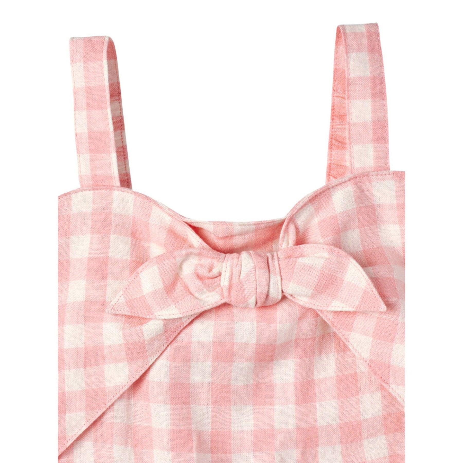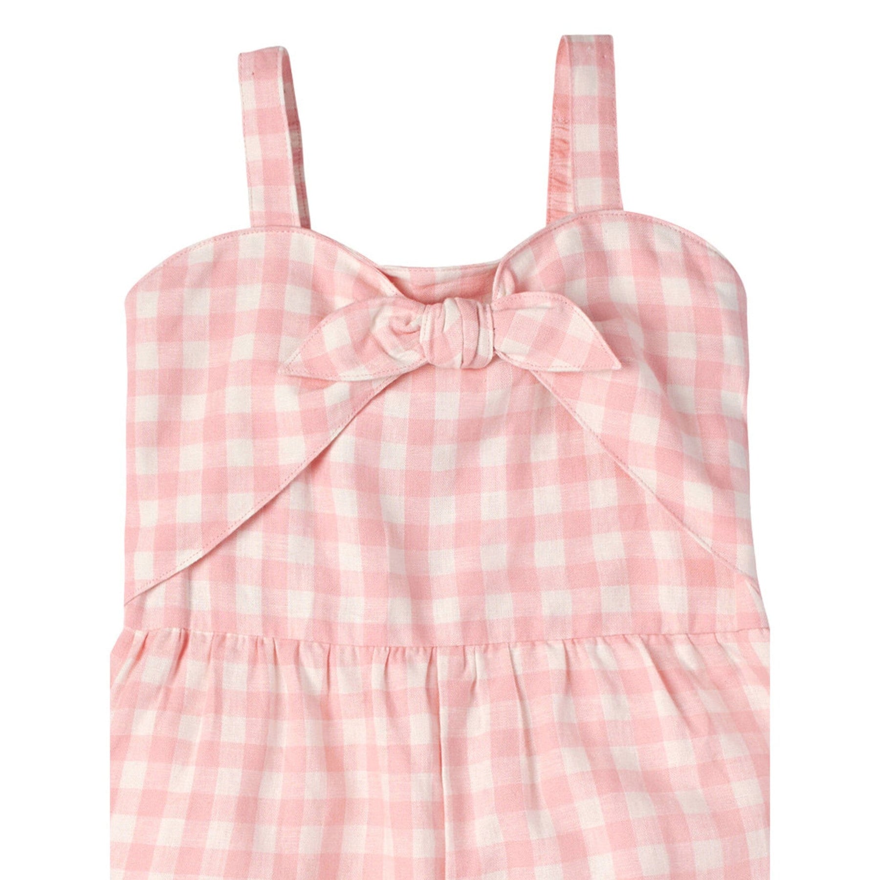 Modern Moments by Gerber® baby linen romper is made of a linen viscose blend that’s lightweight, breathable, cool, and comfy. Our essentials have been independently certified with STANDARD 100 by OEKO-TEX® so that you don’t have to worry about harmful substances in your baby’s wardrobe. This one piece romper includes shoulder-straps, front decorative tie and ruffled short in pink gingham print.