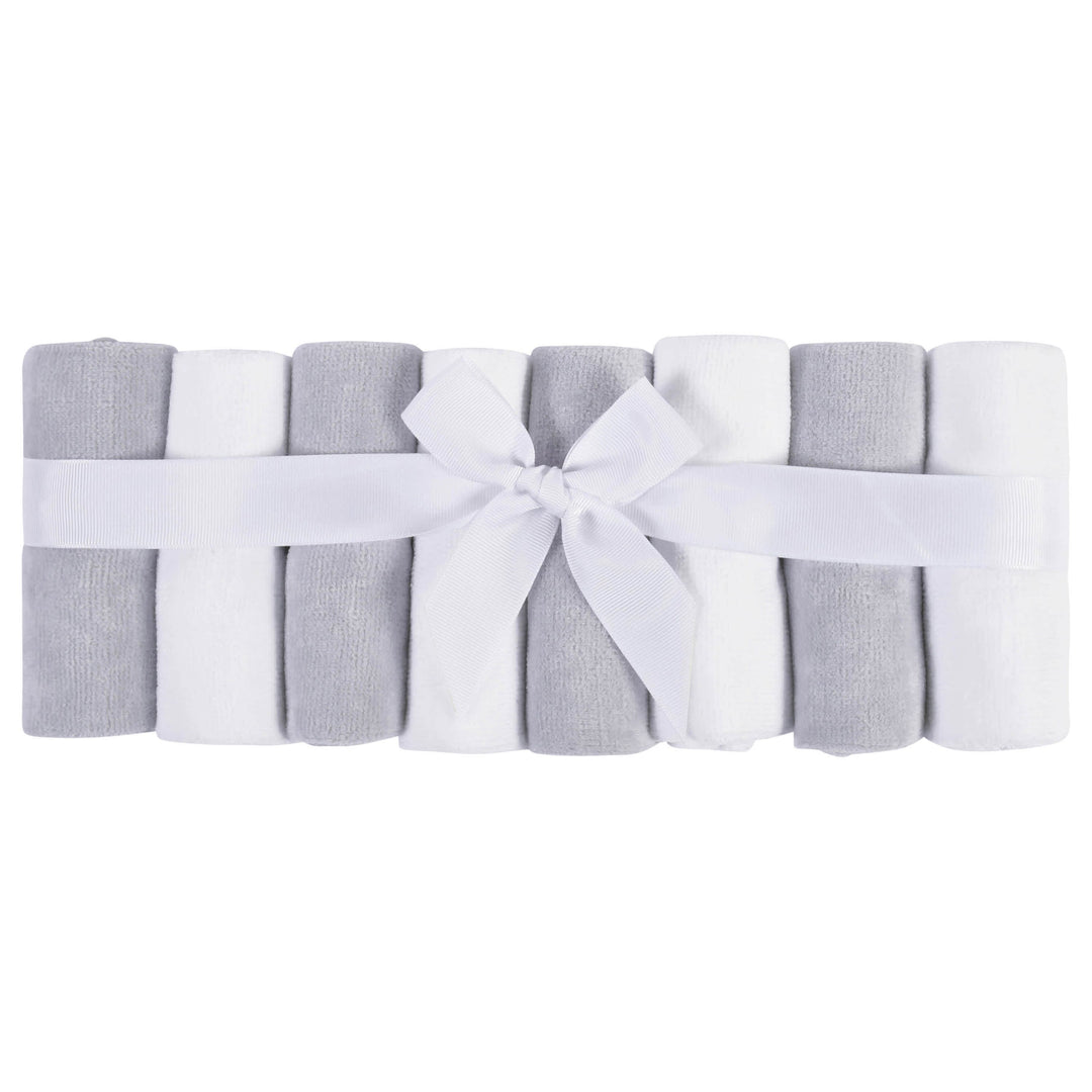 - Includes one bear hooded baby towel, one baby robe with ears, four white baby washcloths & four grey baby washcloths