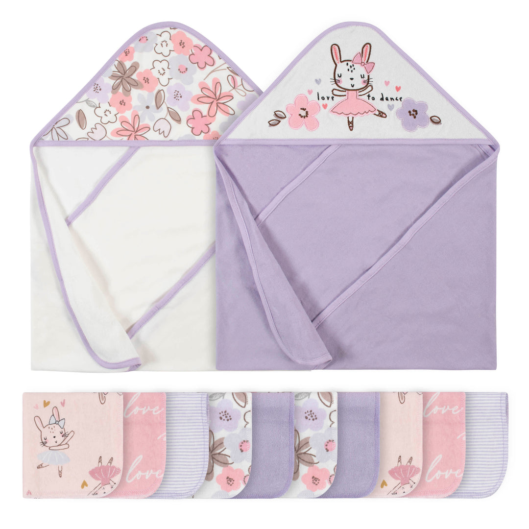 12-Piece Girls Bunny Ballerina Hooded Towel & Washcloth Set