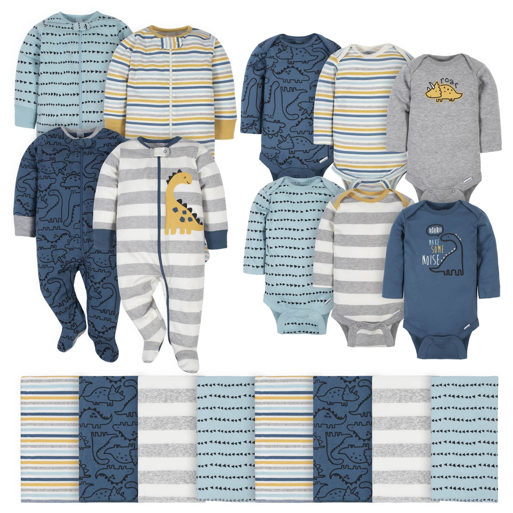 18-Piece Baby Boys Dinosaur Sleep 'N Play, Onesies® Bodysuit, and Burpcloth Set