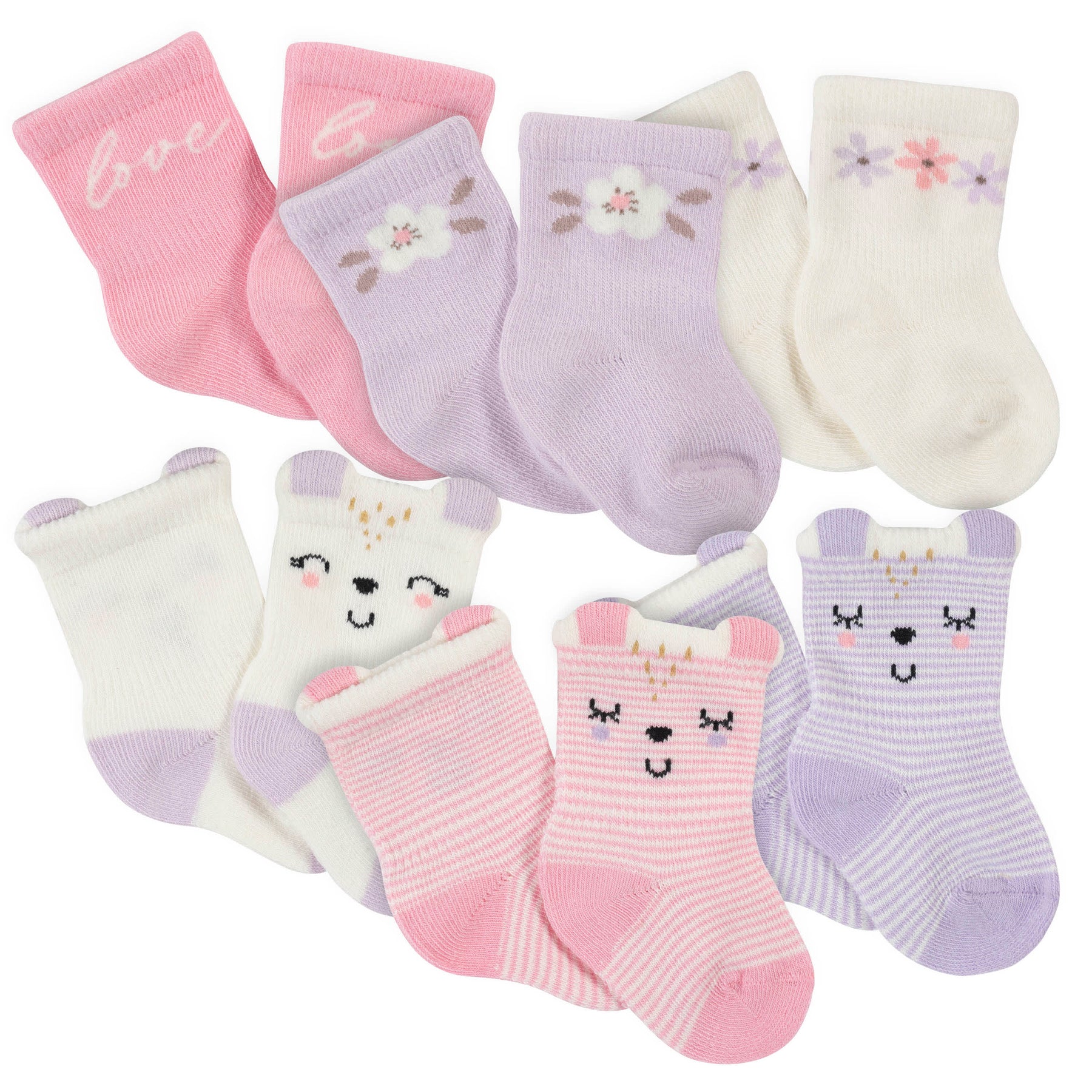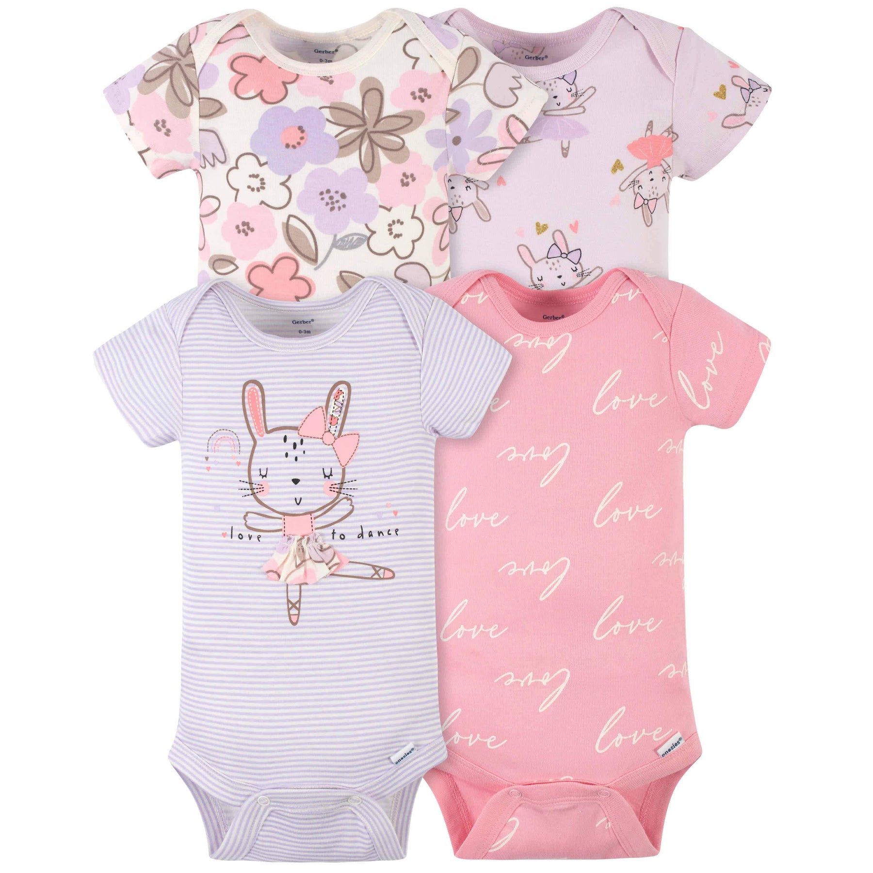 • Includes four short-sleeve Onesies® brand bodysuits, four pairs of no scratch mittens, four baby caps, six pairs of Wiggle-Proof™ socks