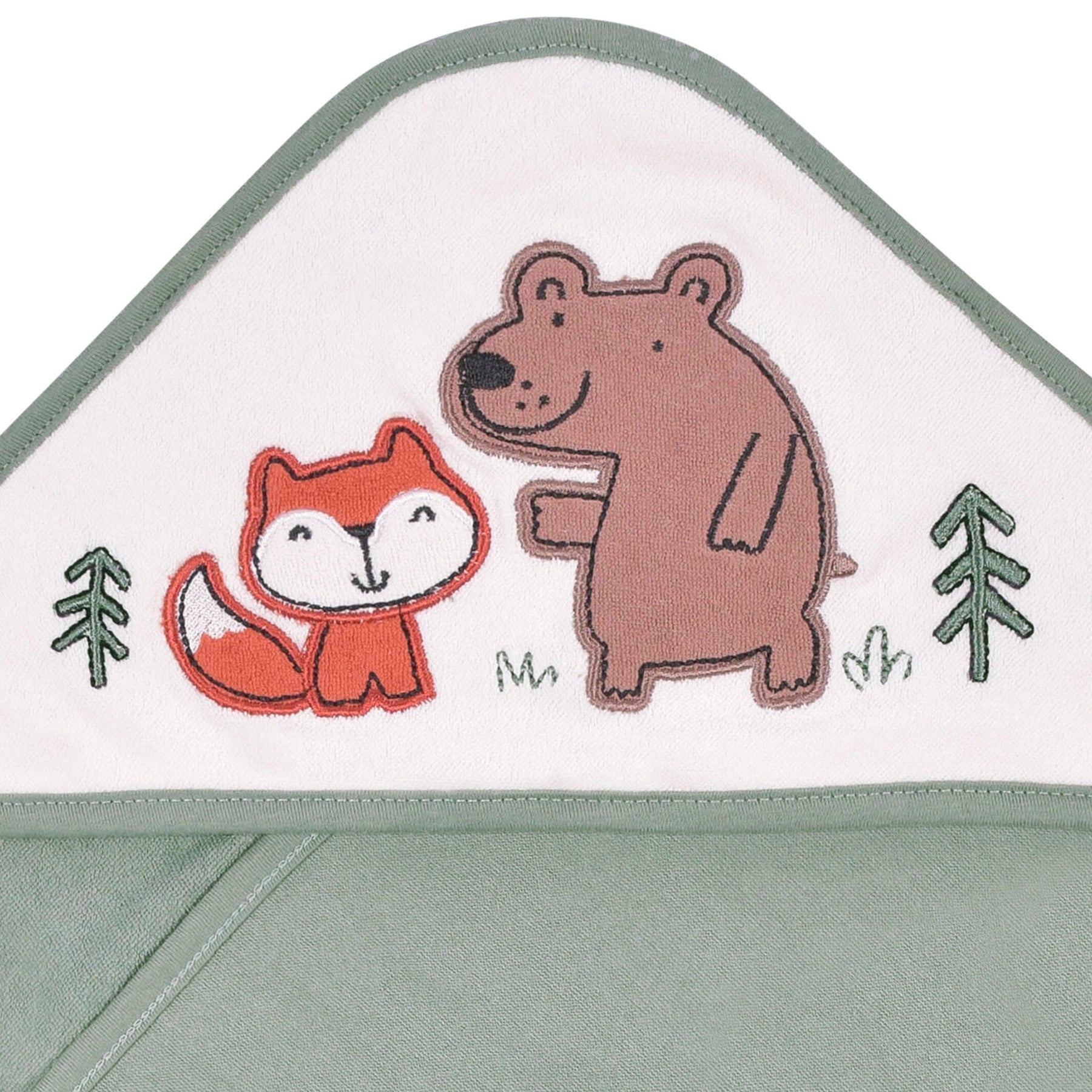 - Made with super soft, absorbent fabric. Perfect for gentle drying after the bath or any swimming adventure. Sized 26in x 30in, the perfect size for babies & toddlers. Features adorable embroidery details, snuggly hoods & machine washable terry fabric. Pair with our adorable, soft washcloths for a complete bath set. Makes a thoughtful, practical baby shower gift.