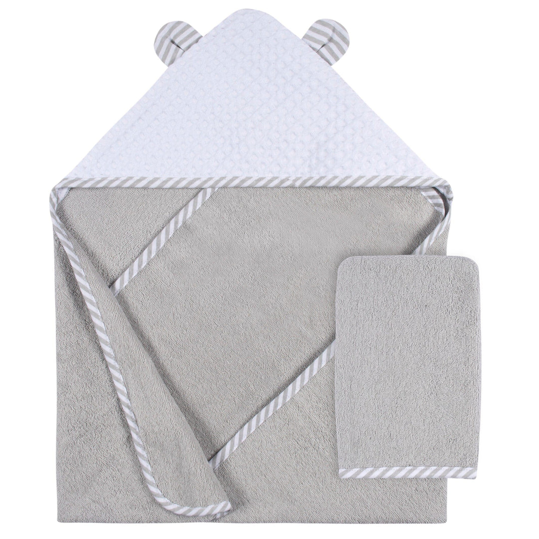 2-Piece Baby Boys Bear Hooded Towel and Washcloth Mitt Set