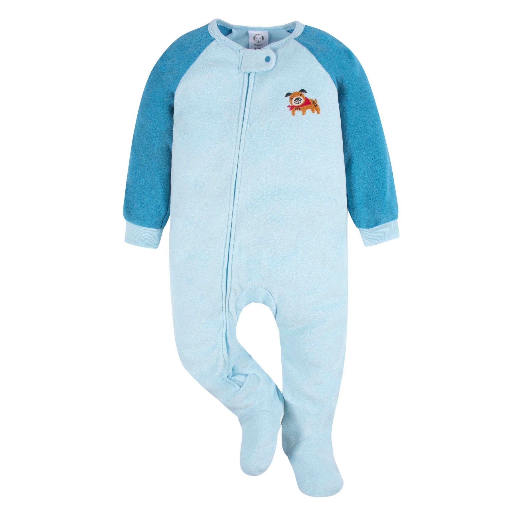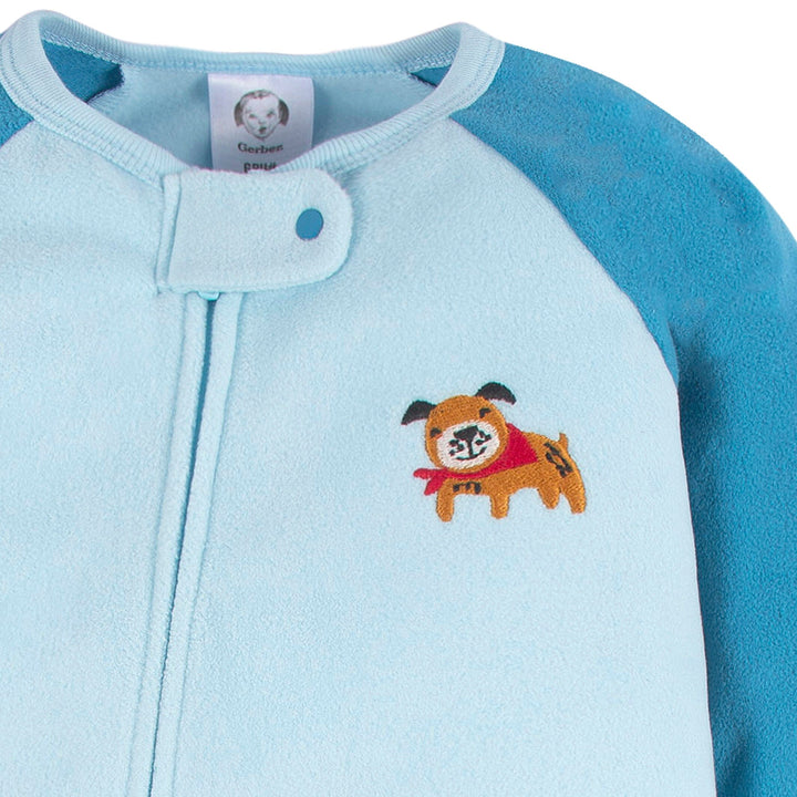 Our dog themed microfleece blanket sleepers are perfect for when you’ve got the AC on high or it’s chilly outside. Made with polyester microfleece, they’re soft and flame resistant for safety. Each toddler blanket sleeper features a zipper down the front to keep middle-of-the-night changes quick and simple. Plus, the baby sizes all have safety tabs at the top of the zipper to prevent their sweet faces from being poked and irritated (safety tab not included on toddler sizes). This two pack of snuggly baby and toddler sleepers are designed with fun prints and colors to add a little excitement to sleepy time. Each blanket sleeper is machine washable and dryable. We had our essentials independently certified with STANDARD 100 by OEKO-TEX® so that you don’t have to worry about harmful substances in your baby’s nursery.