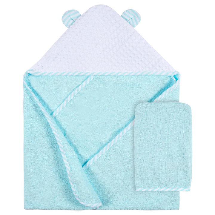 2-Piece Baby Neutral Little Animals Hooded Towel and Washcloth Mitt Set