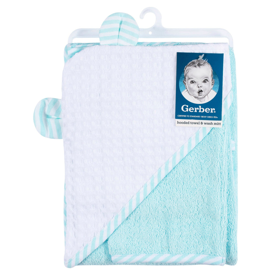 - Includes one hooded towel and washcloth mitt