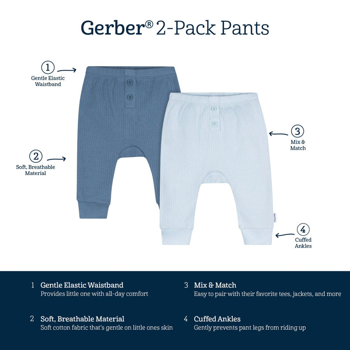 Add a charming touch to your little one’s wardrobe with this 2-pack of baby pants, designed with a stylish drop needle knit for extra sweetness. Made from 100% cotton, they’re soft, breathable, and gentle on delicate skin. The neutral tones make mixing and matching a breeze, while the pull-on waistband keeps dressing quick and easy. Plus, they’re crafted with Better Cotton™, so you can feel good knowing they support more sustainable farming practices for a healthier planet. Our essentials have been independently certified with STANDARD 100 by OEKO-TEX® so that you don’t have to worry about harmful substances in your little one’s wardrobe. Pack includes two pants.