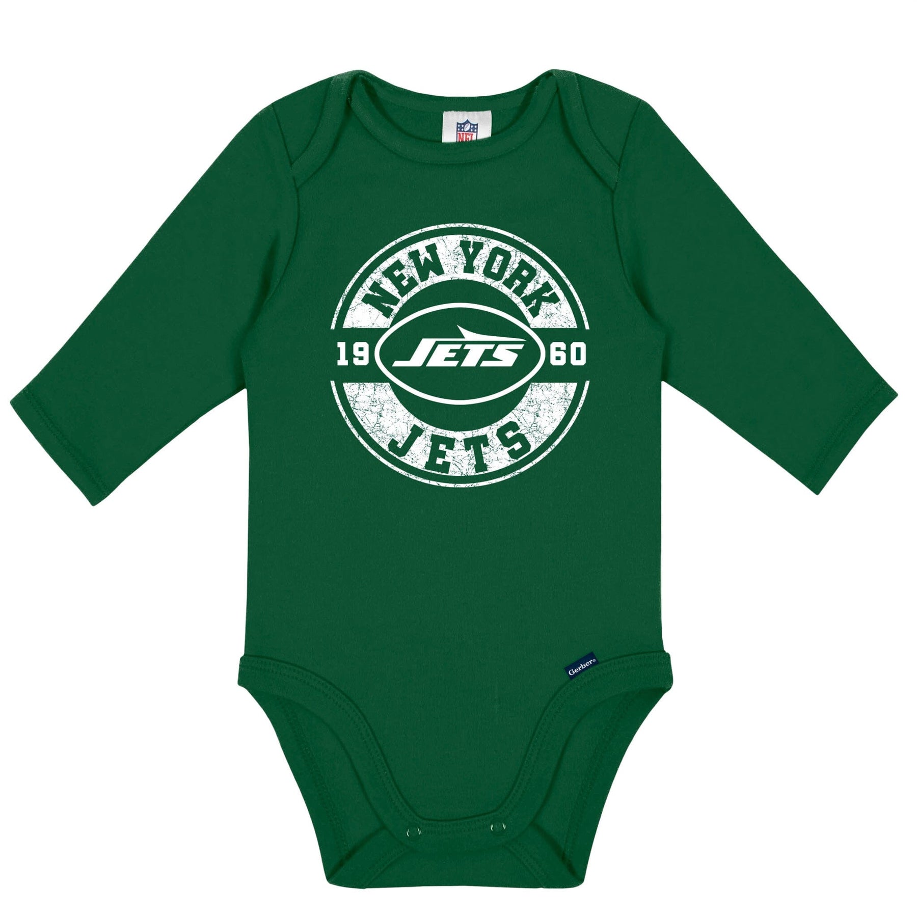 Your little one will be ready for kickoff in these New York Jets long sleeve bodysuits. Crafted from plush interlock fabric, they’re smooth, thick, and comfy—ideal for all-day wear during the fall football season. Designed with lap shoulders and leg snaps for quick changes, they also feature stretchy ribbed trim for a flexible fit. Whether it’s tummy time or halftime, these bodysuits are a touchdown. Our essentials independently certified with STANDARD 100 by OEKO-TEX so that you don’t have to worry about harmful substances in your little one's wardrobe. Includes two baby boy bodysuits.
