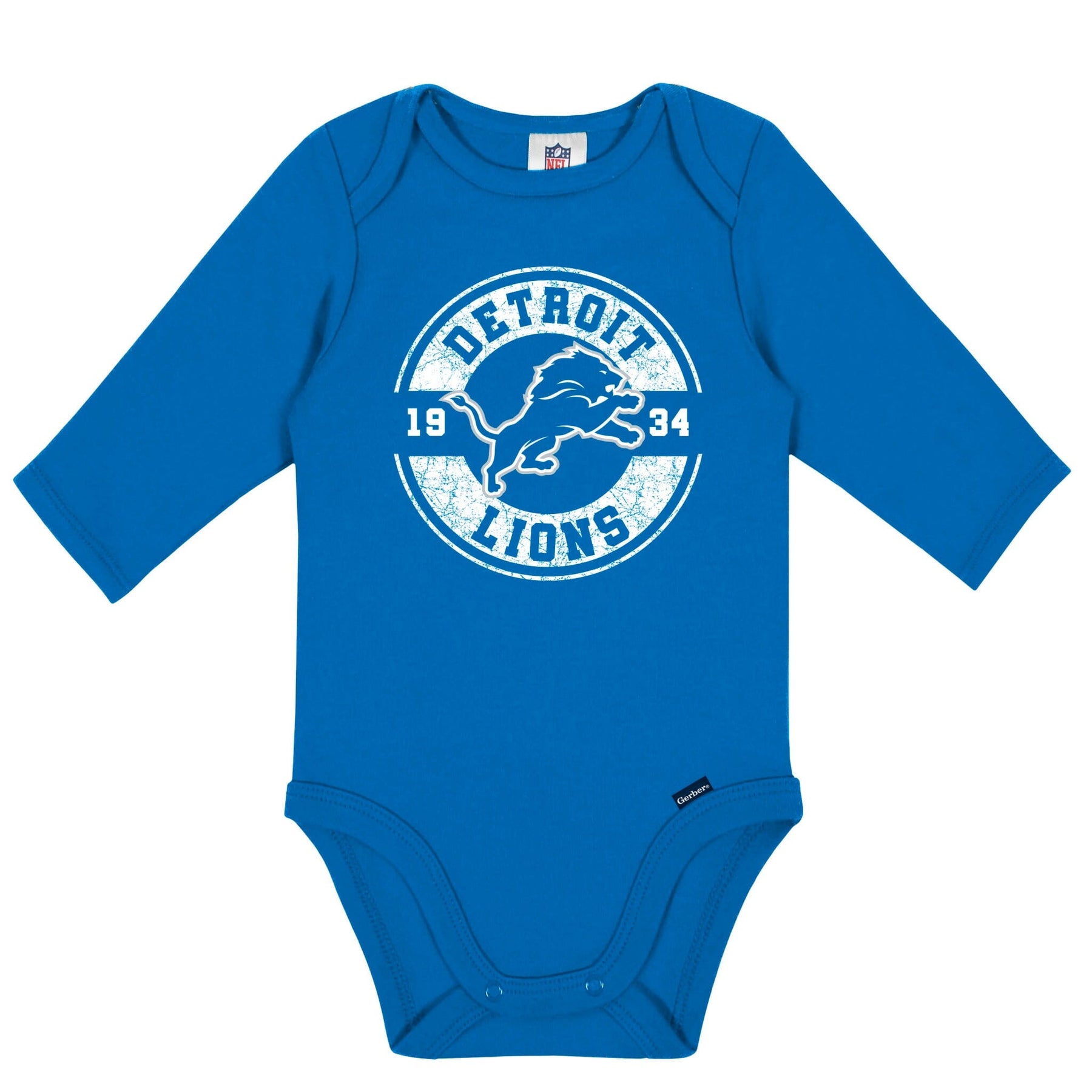 Roar into football season with these Detroit Lions long sleeve bodysuits made for your littlest fan. The soft, smooth interlock fabric feels cozy and thick—perfect for chilly game days. With lap shoulder styling, stretchy ribbed edges, and easy leg snaps, these bodysuits are built for quick changes and comfortable wear. Baby will be ready to cheer from the first snap to the final whistle. Our essentials have been independently certified with STANDARD 100 by OEKO-TEX so that you don’t have to worry about harmful substances in your little one's wardrobe. Includes two baby boy bodysuits.