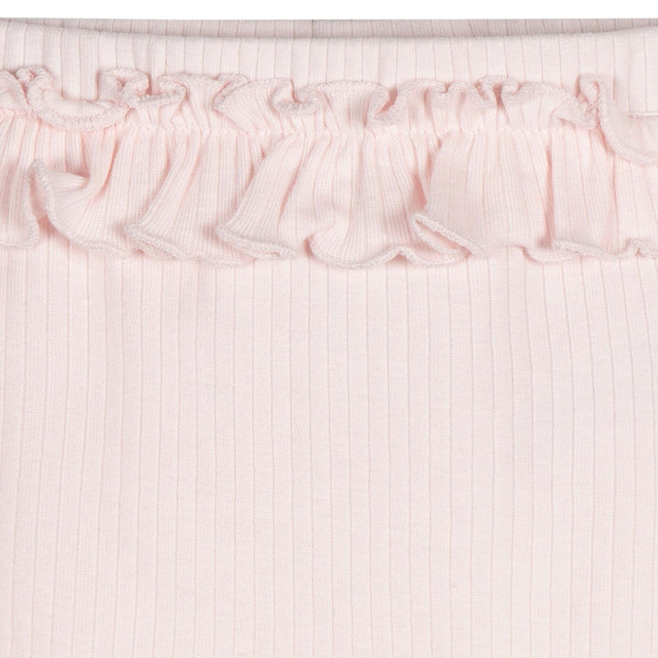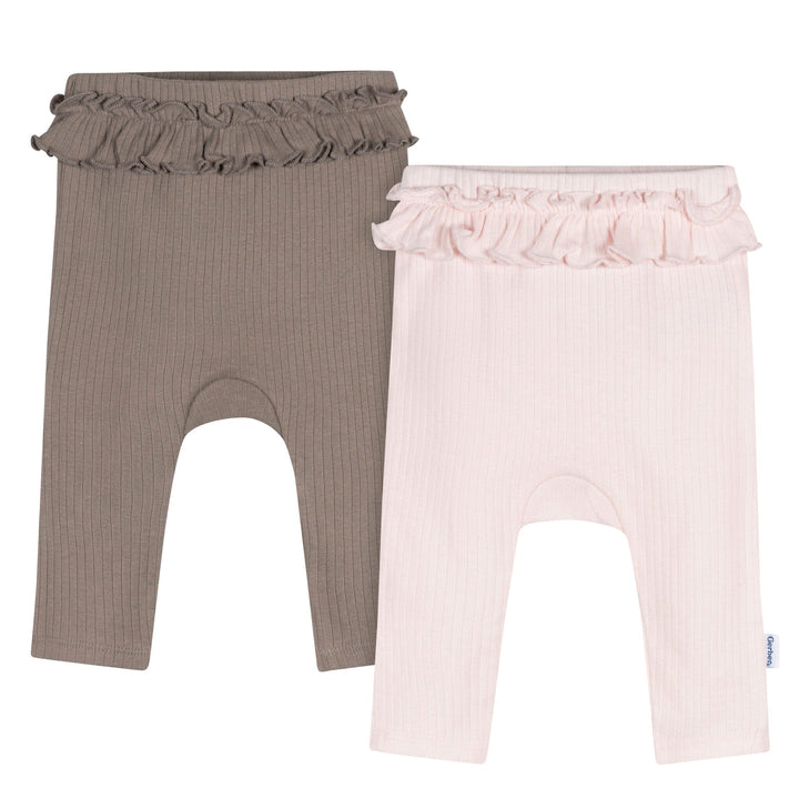 Keep baby comfy and stylish with this 2-pack of adorable pants! Made from 100% cotton in a soft, breathable 5x1 drop needle knit, they’re gentle on delicate skin and perfect for all-day wear. The pull-on waistband makes dressing and diaper changes a breeze, while the subtle texture and classic colors make them easy to mix and match with any top. A delicate purl-edge ruffle at the waist adds just the right touch of sweetness for a charming finish. Plus, they’re made with Better Cotton™, supporting more sustainable farming for a healthier planet. Our essentials have been independently certified with STANDARD 100 by OEKO-TEX® so that you don’t have to worry about harmful substances in your little one’s wardrobe. Pack includes two pants.