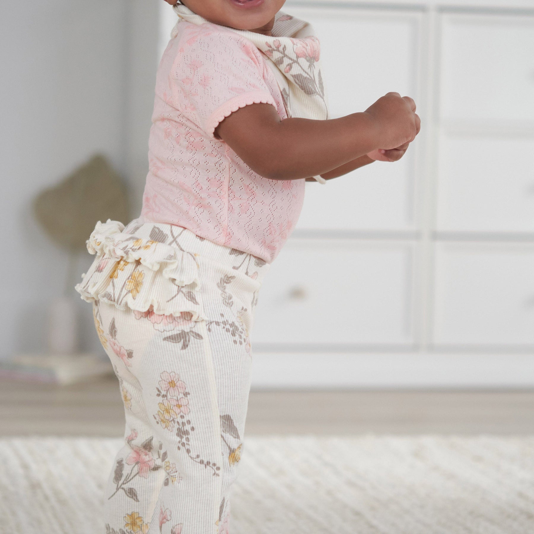 Your baby's wardrobe just got cooler. These floral themed pants are comfy, easy-care, and totally stylin'. Perfect to mix and match with our coordinating bodysuits. We use STANDARD 100 by OEKO-TEX® certification on products tested in an independent laboratory against a list of more than 400 harmful substances, including PFAS.