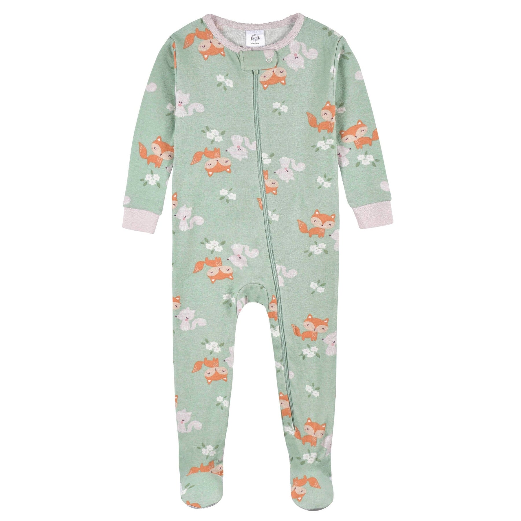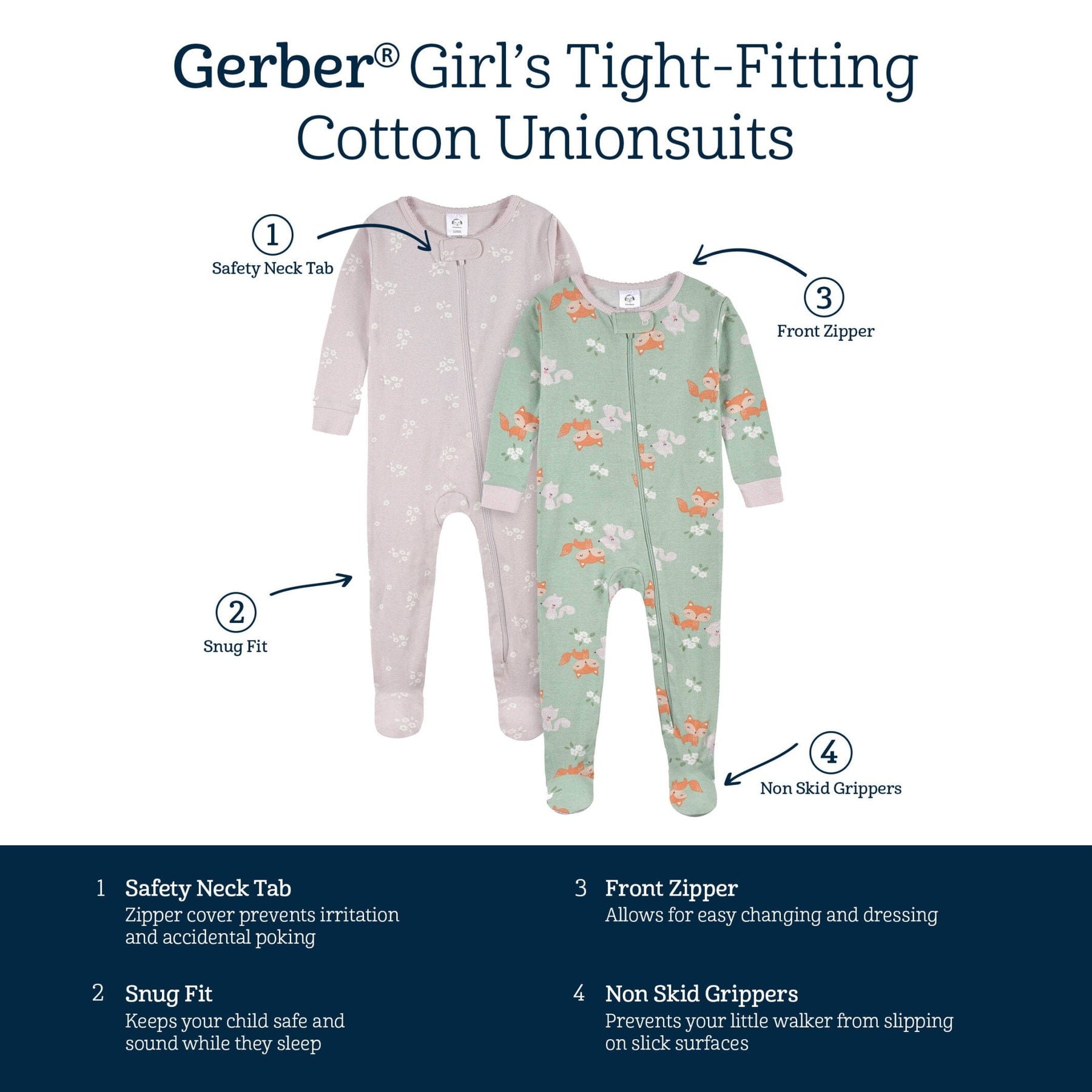 2-Pack Baby & Toddler Girls Purple Woodland Fox Snug Fit Footed Cotton Pajamas