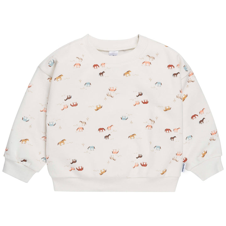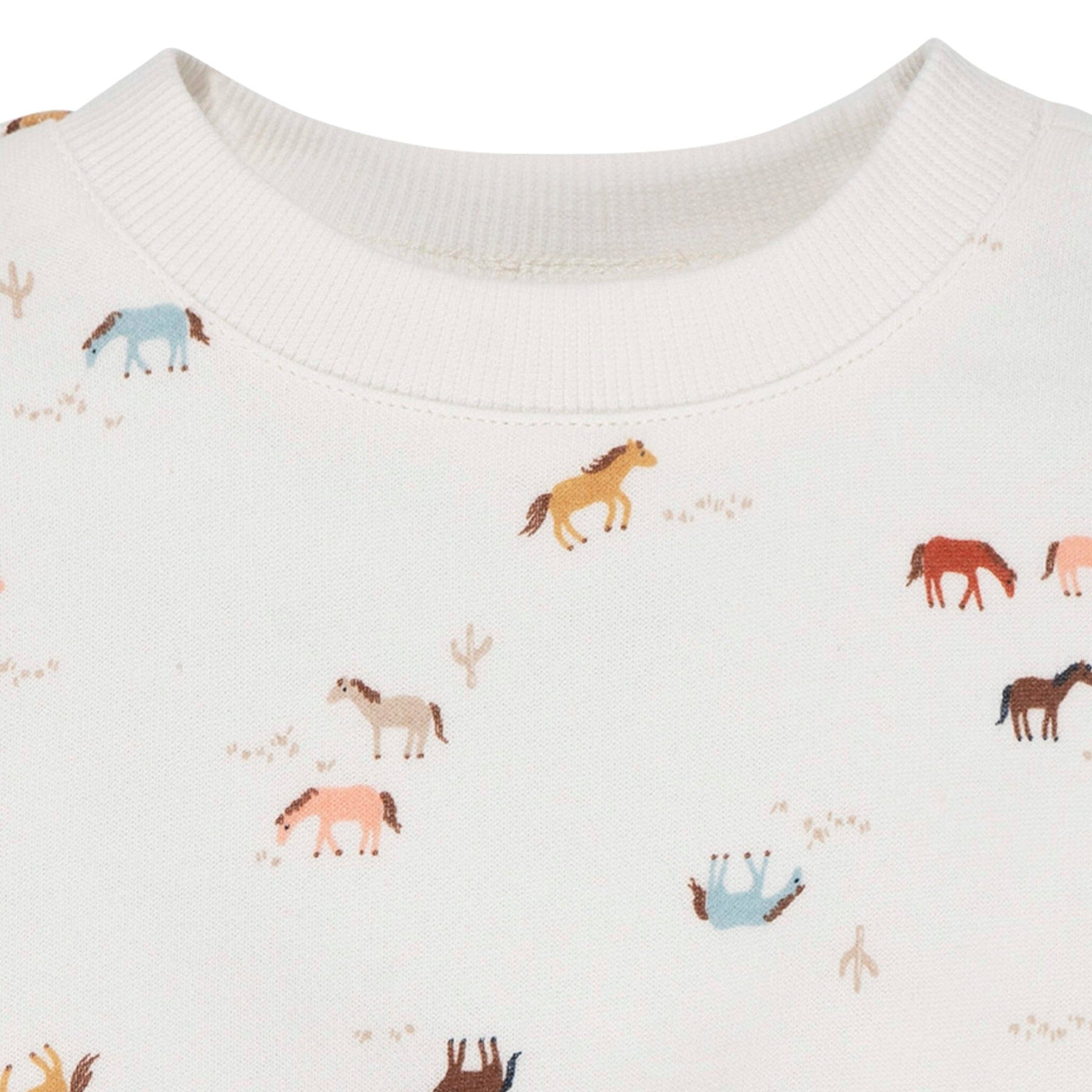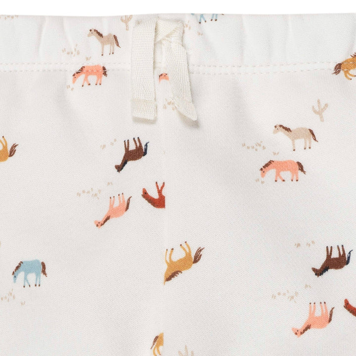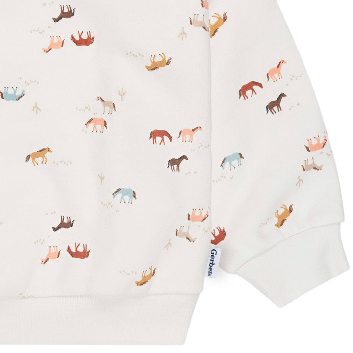 This cuddly fleece outfit is ready to keep your little one warm and oh-so-comfy on cooler days. Made from super soft fleece, it features ribbing at the neckline, wrists, hem, and ankles for a cozy, secure fit that moves with every wiggle and crawl. The pants include a comfort stretch waistband and a faux drawstring for an easy, flexible fit parents love. With its off-white background and colorful horse print, it’s a playful look that brings extra charm to chilly weather. Our essentials have been independently certified with STANDARD 100 by OEKO-TEX® so that you don’t have to worry about harmful substances in your little one’s wardrobe. Includes matching top and bottom.