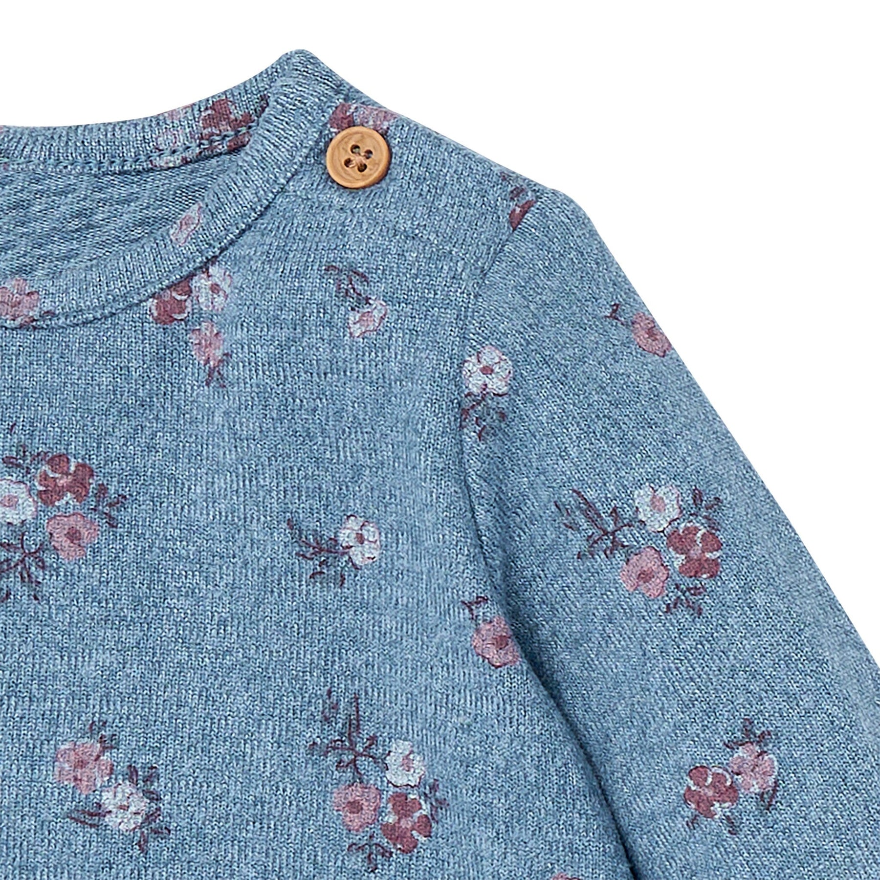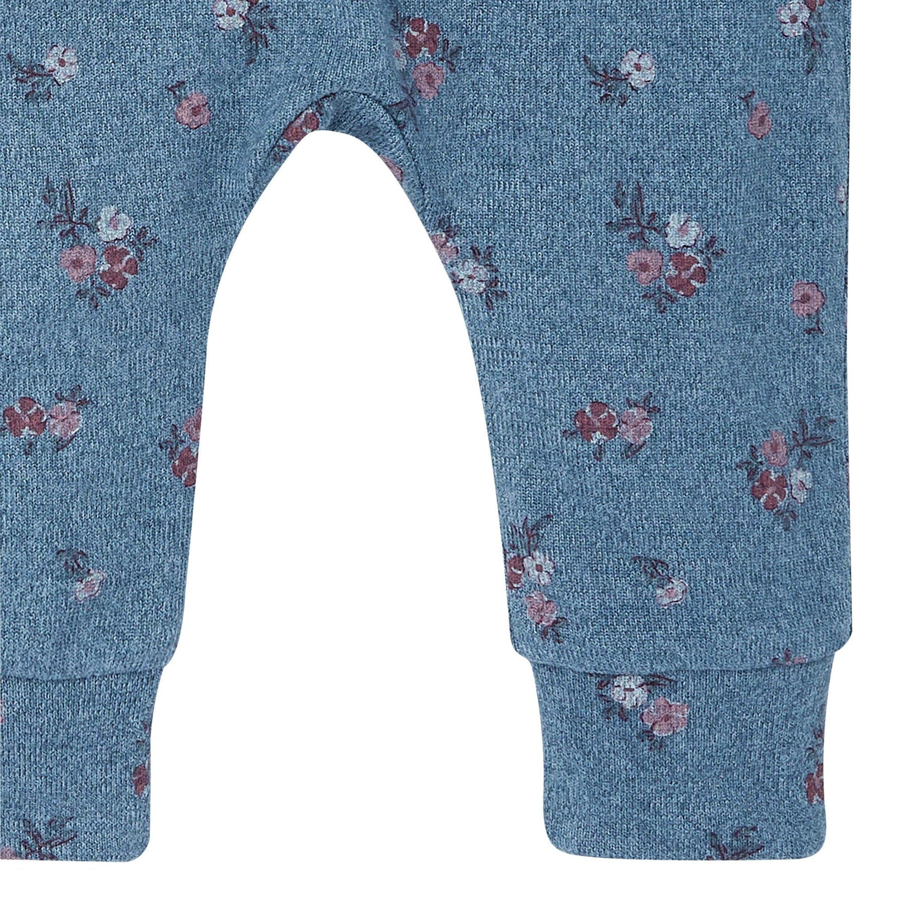 This baby girl peplum top and pant set is a sweet blend of comfort and charm. Crafted from exceptionally soft hacci fabric, it’s made for cozy days and easy movement. The peplum top features a flared hem for a touch of boutique flair, while the matching pants include a stretchy waistband and cinched ankles for a secure, flexible fit. In a marbled heather blue with a delicate floral print, this set is perfect for everyday play with a beautifully polished look. Our essentials have been independently certified with STANDARD 100 by OEKO-TEX® so that you don’t have to worry about harmful substances in your little one's wardrobe. Pack includes matching peplum top and pants set from modern moments™ by Gerber®.