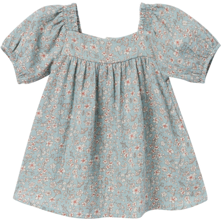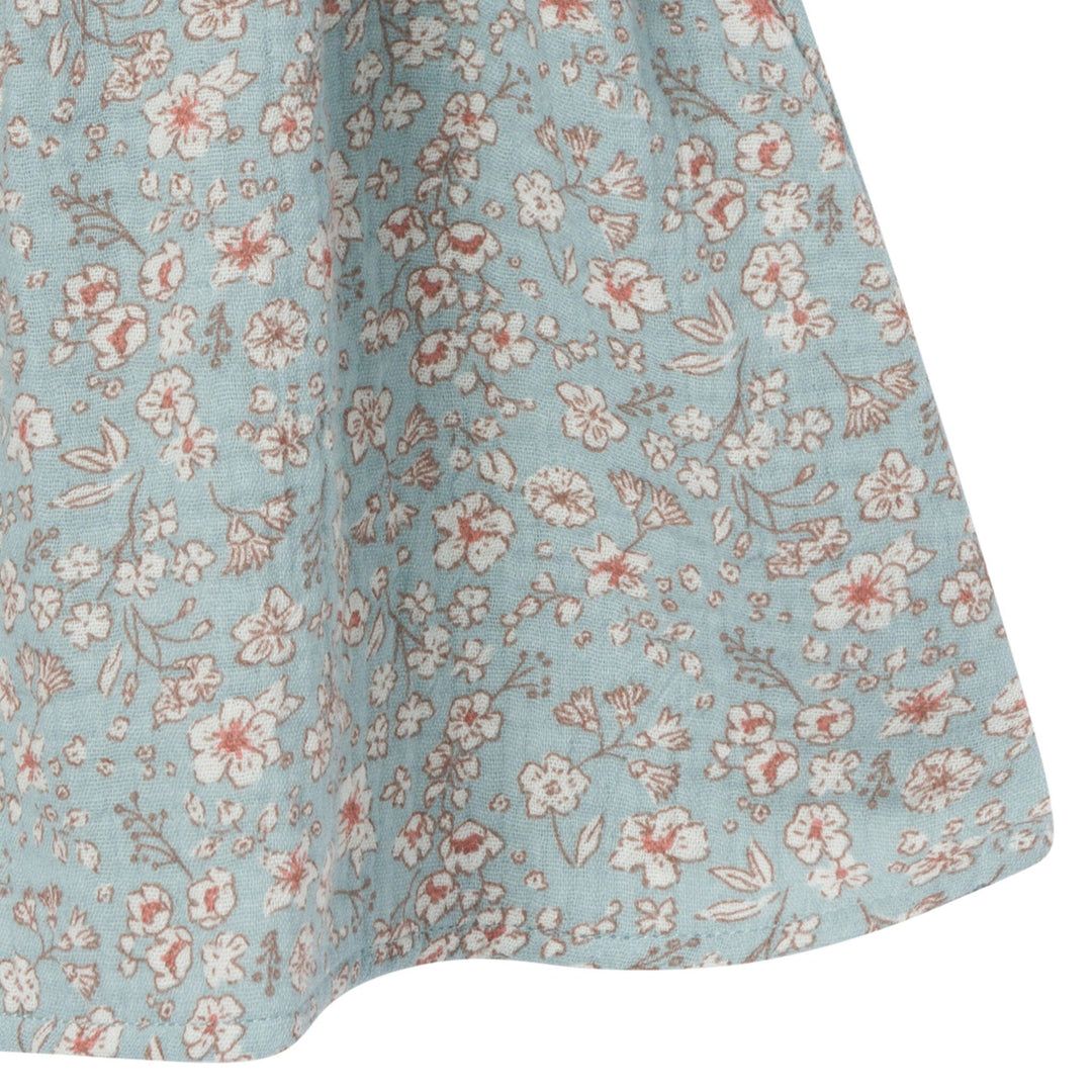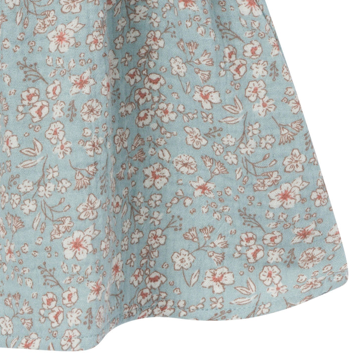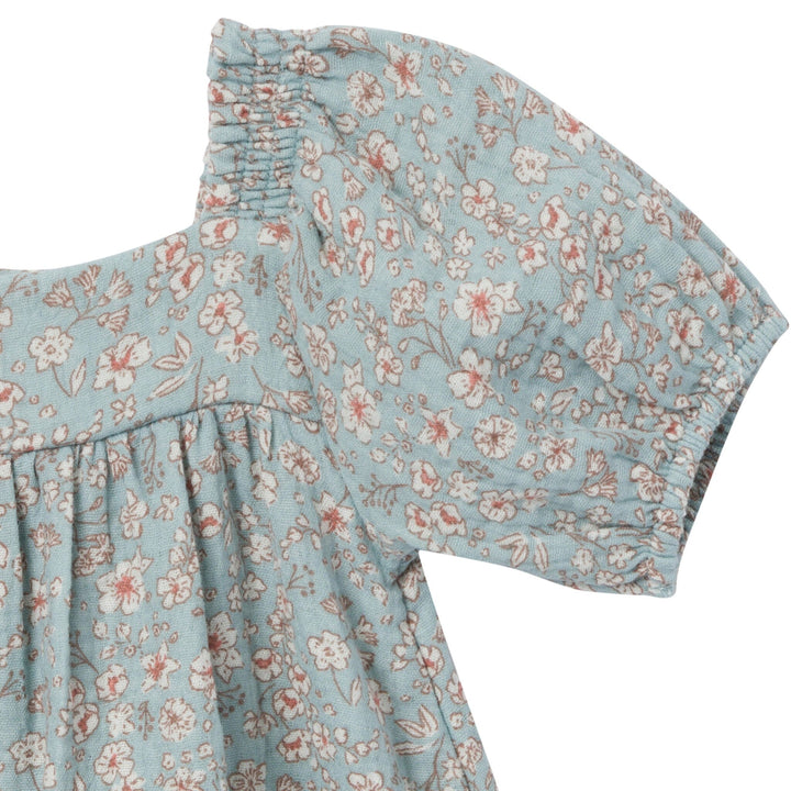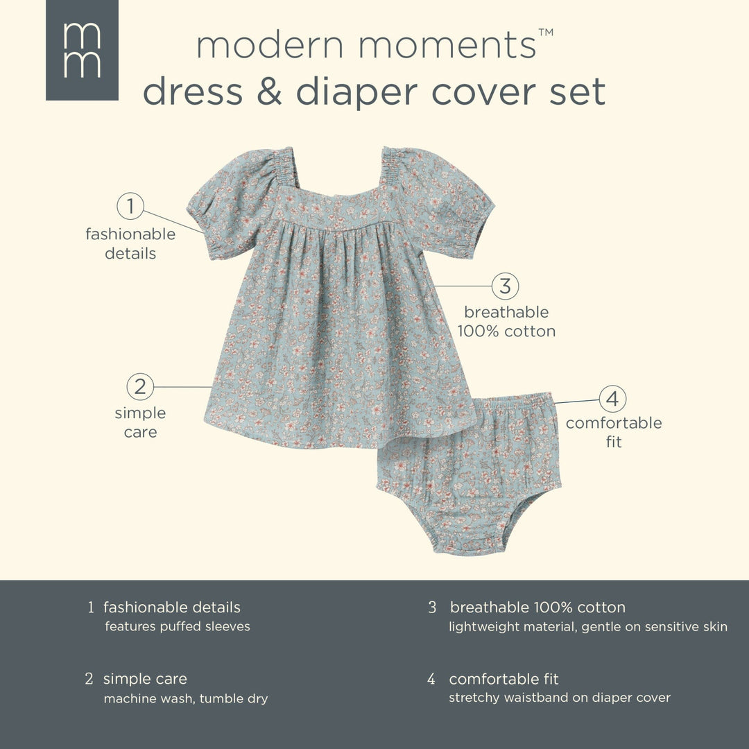 2-Piece Baby Girls Teal Ditsy Puffed Sleeve Dress and Diaper Cover