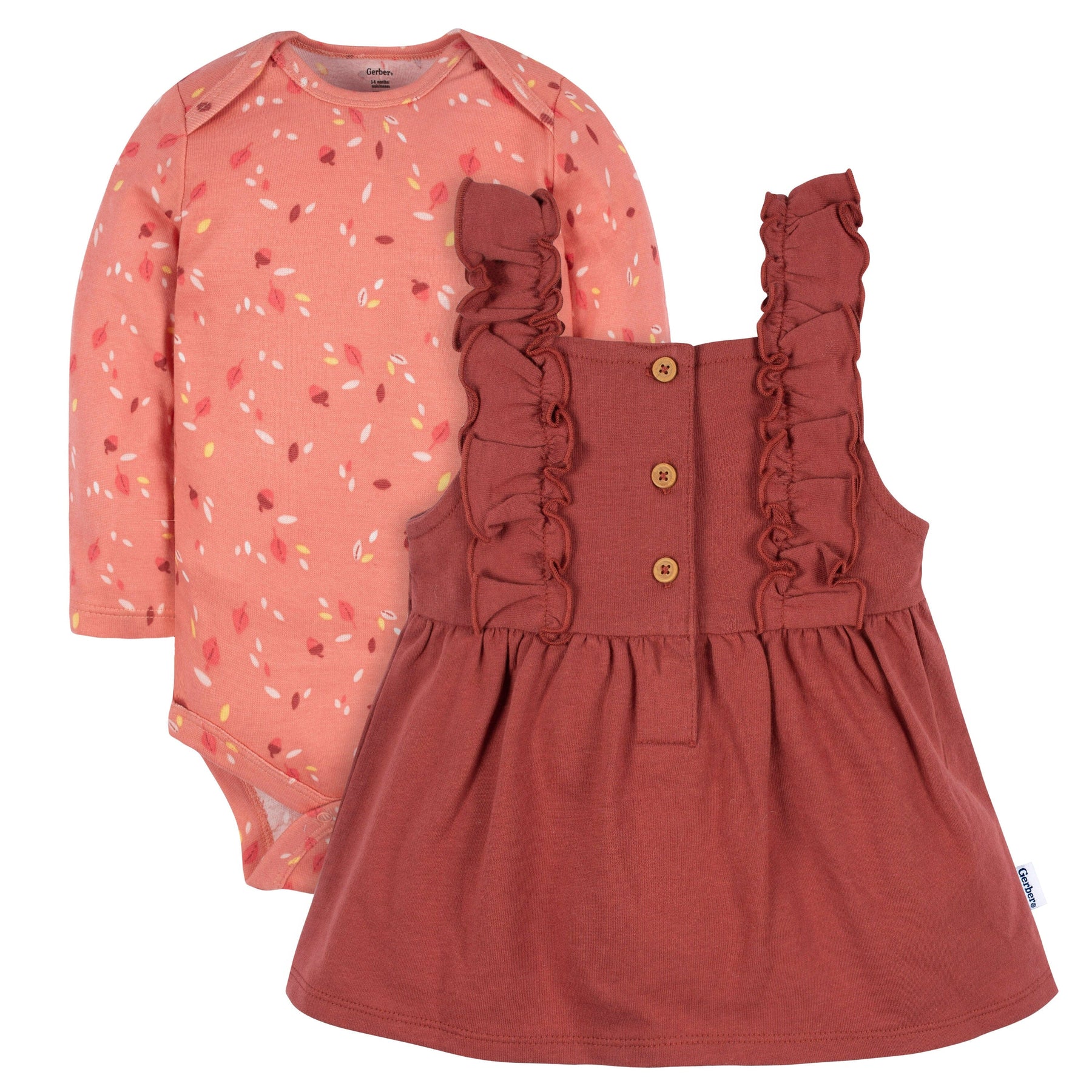 2-Piece Baby Girls Orange Leaves Jumper & Bodysuit Set