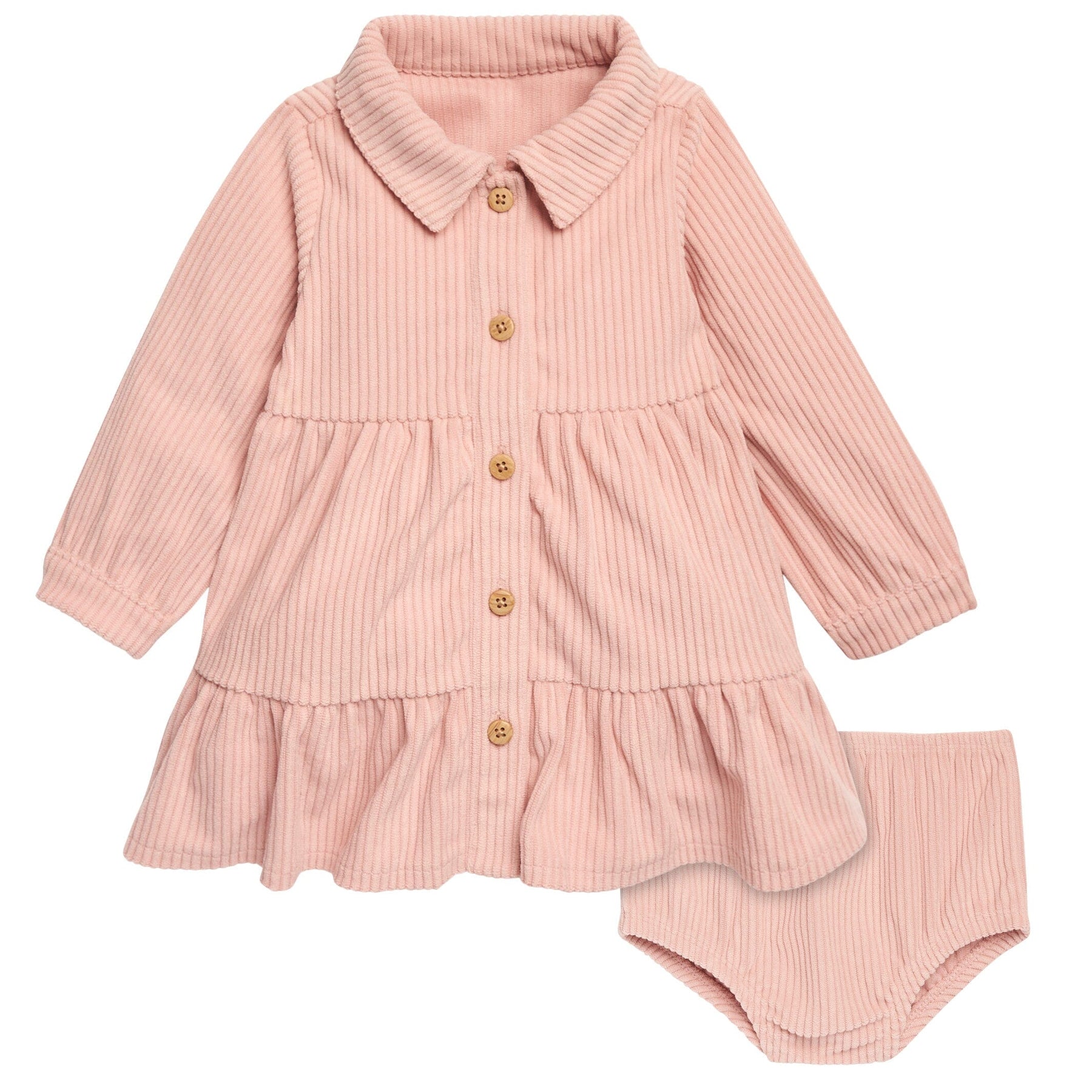 2-Piece Baby Girls Peach Corduroy Dress Set