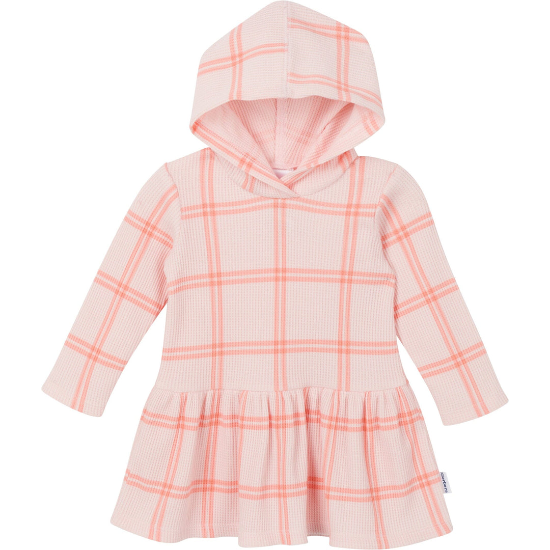 Crafted from soft fabric, our adorable, hooded baby girl dress is the perfect choice for all-day wear, keeping your baby cozy and content even on cooler days. With its stylish ruffled skirt, this baby dress is a charming addition to her wardrobe. The matching diaper cover has stretchy ribbing at the waistband and leg holes to ensure comfort, allowing her to move freely and explore with ease. Dress her in comfort and cuteness with our hooded baby dress! Our essentials have been independently certified with STANDARD 100 by OEKO-TEX® so that you don’t have to worry about harmful substances in your baby’s wardrobe. This pack includes one dress with matching diaper cover.