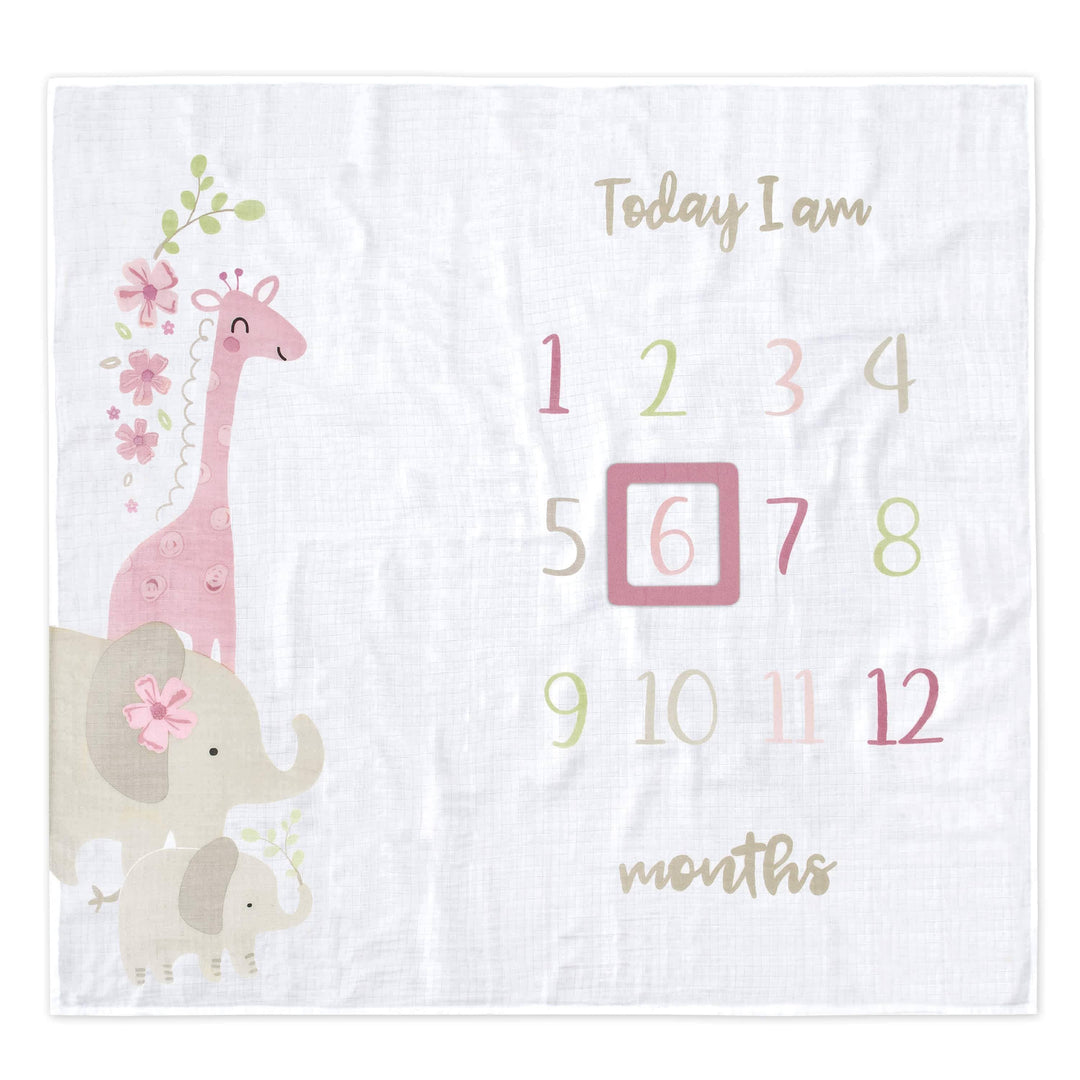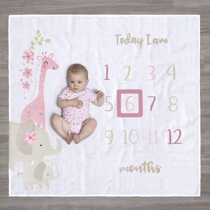 2-Piece Baby Girls Safari Milestone Blanket Set