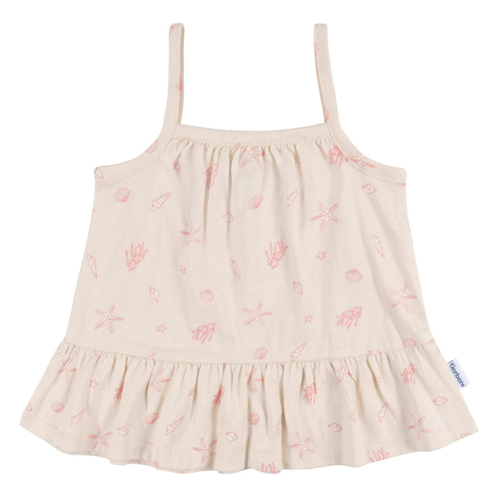 Crafted from 100% cotton peached jersey, this matching baby girl tank top and diaper cover set offers a gentle touch on sensitive skin, ensuring she stays comfortable all day long. The lightweight, slightly stretchy material is the perfect choice for fun-filled sunny days. Wherever the day takes you, she’ll be adorable and stylish at play or while running daily errands. Our essentials have been independently certified with STANDARD 100 by OEKO-TEX® so that you don’t have to worry about harmful substances in your baby’s wardrobe. Includes one tank top with matching diaper cover.