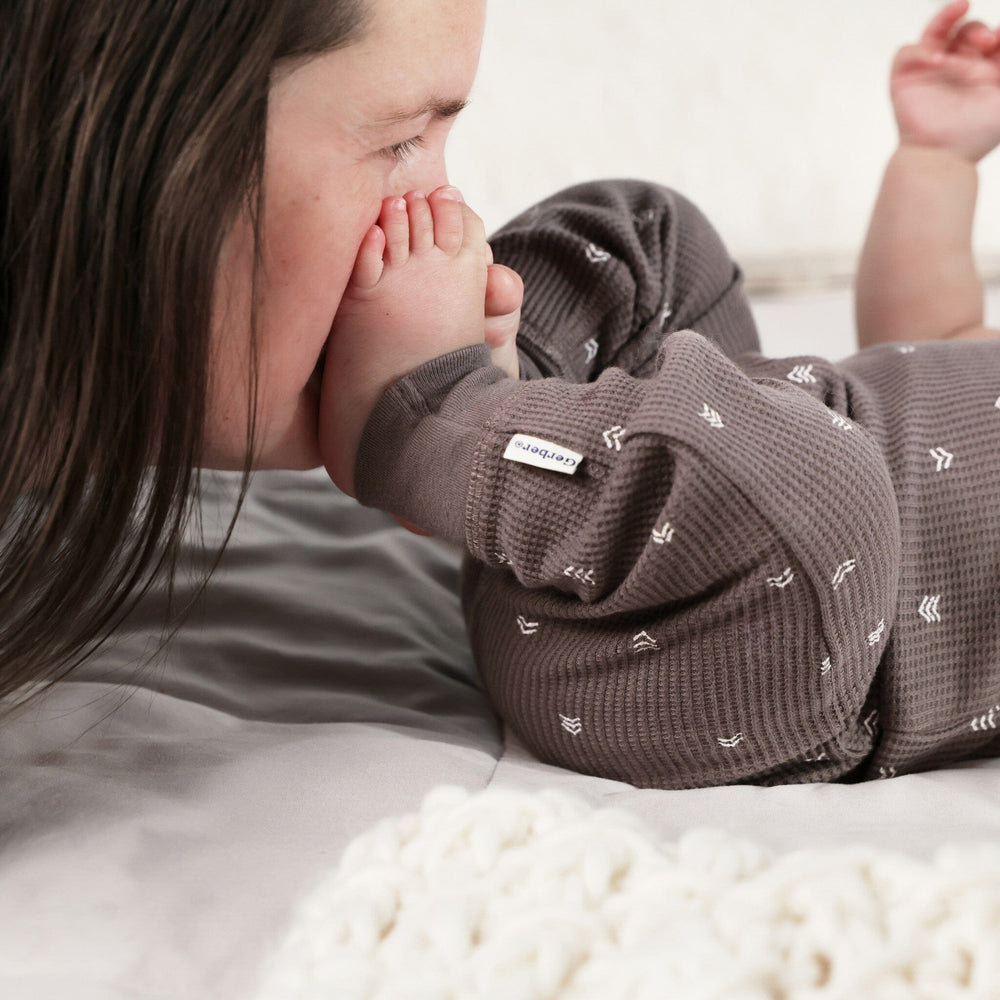 Perfect for playdates or snuggly days at home, this unisex bodysuit and pants set is a go-to favorite. The soft, stretchy fabric keeps baby comfy on the move, and the lap-shoulder neckline with snaps makes outfit changes quick and easy. Ribbing along the neckline and leg holes gives a comfy fit, while the pants offer a soft waistband and cinched ankles to keep things secure. The simple stripe pattern cute and classic, perfect for any baby to enjoy. Our essentials have been independently certified with STANDARD 100 by OEKO-TEX® so that you don’t have to worry about harmful substances in your little one's wardrobe. Includes one bodysuit with matching pants.