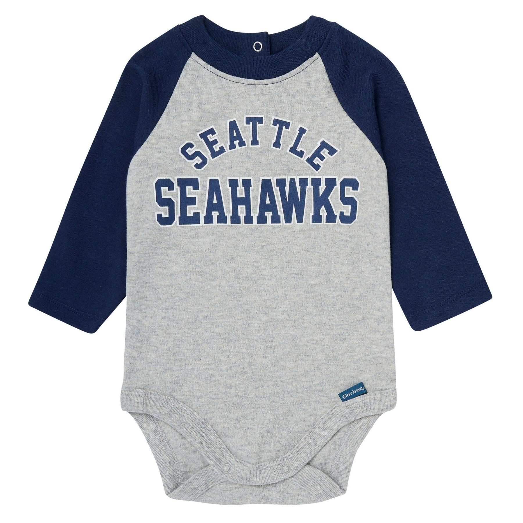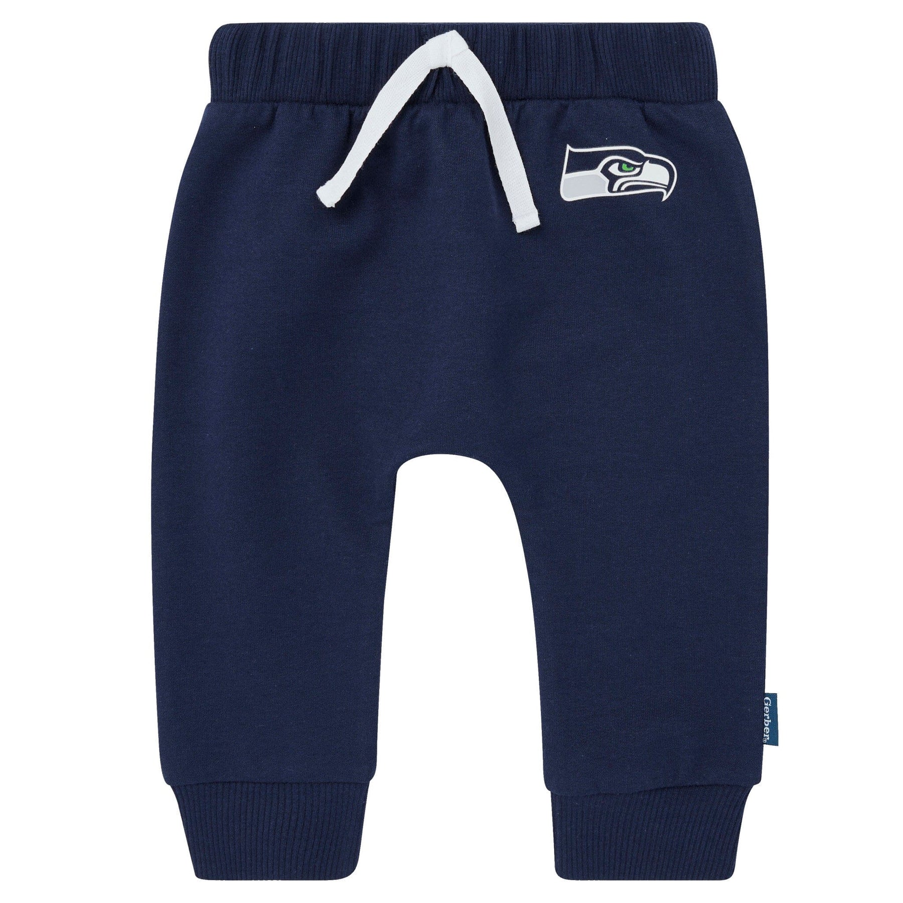 Your little 12th fan will be ready to rally in this comfy Seahawks bodysuit and jogger pant set! Designed for cooler weather, it features a long-sleeve bodysuit that keeps them snug, soft and durable fabric that stands up to play, and jogger pants with a stretchy waistband and cinched ankles for a secure fit. Whether you're headed to a watch party or just lounging at home, this outfit scores big on comfort and team pride. Our essentials are independently certified with STANDARD 100 by OEKO-TEX, so you don’t have to worry about harmful substances in your little one's wardrobe. Includes bodysuit and matching sweatpants.
