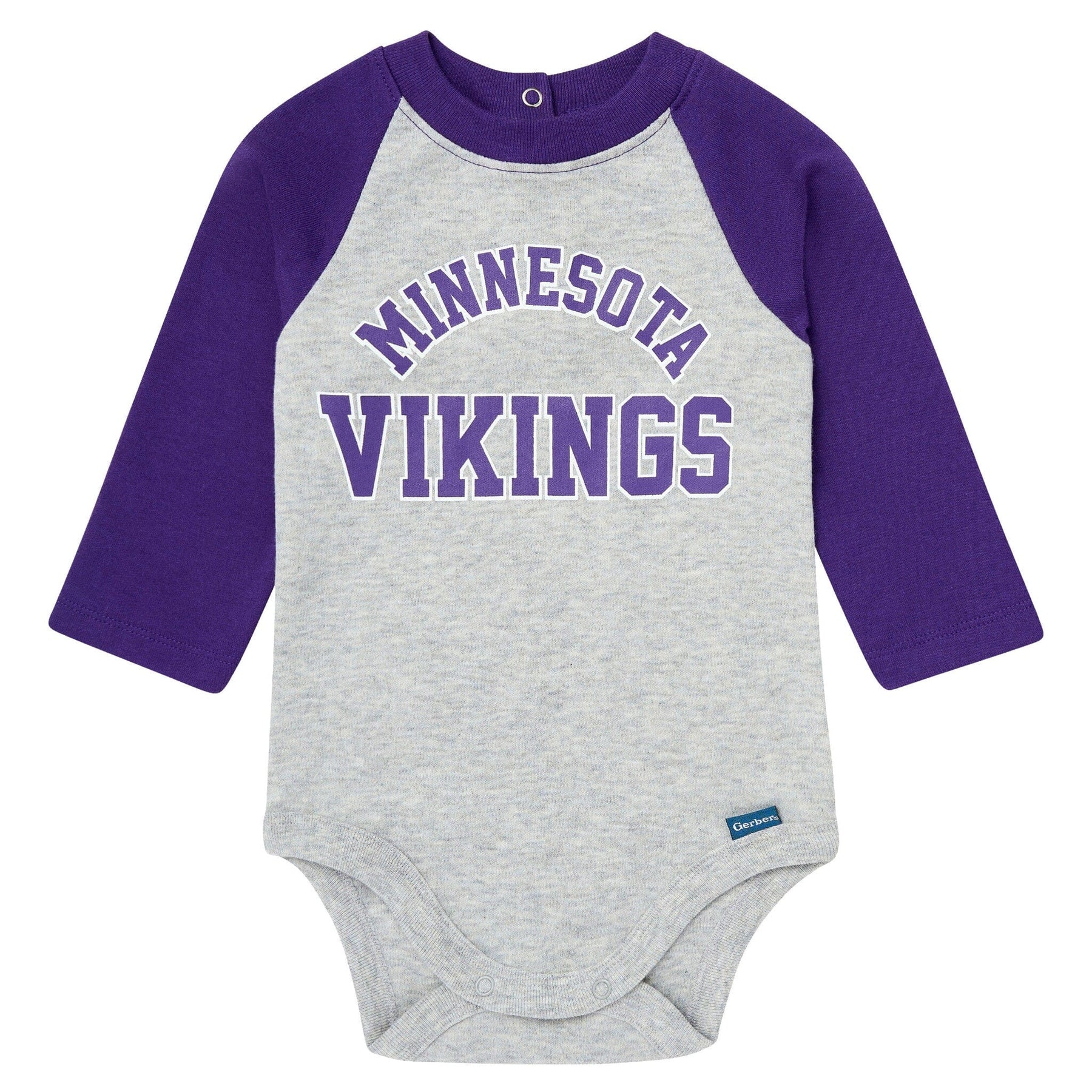 Raise 'em right in purple and gold with this cozy Vikings bodysuit and jogger pant set! Made with soft, durable fabric, this long-sleeve bodysuit keeps your little one toasty on chilly days, while joggers with a comfort-stretch waistband and cinched ankles ensure a snug, move-friendly fit. It’s the perfect blend of playtime comfort and team pride—Skol, baby! Our essentials are independently certified with STANDARD 100 by OEKO-TEX, so you don’t have to worry about harmful substances in your little one's wardrobe. Includes bodysuit and matching sweatpants.