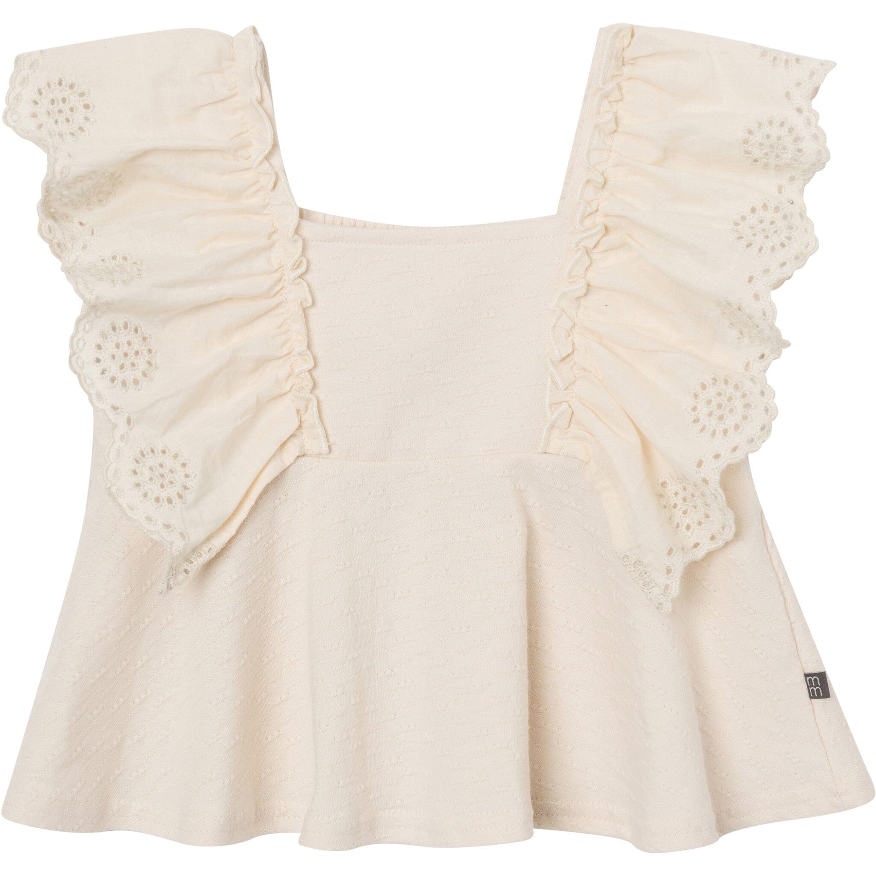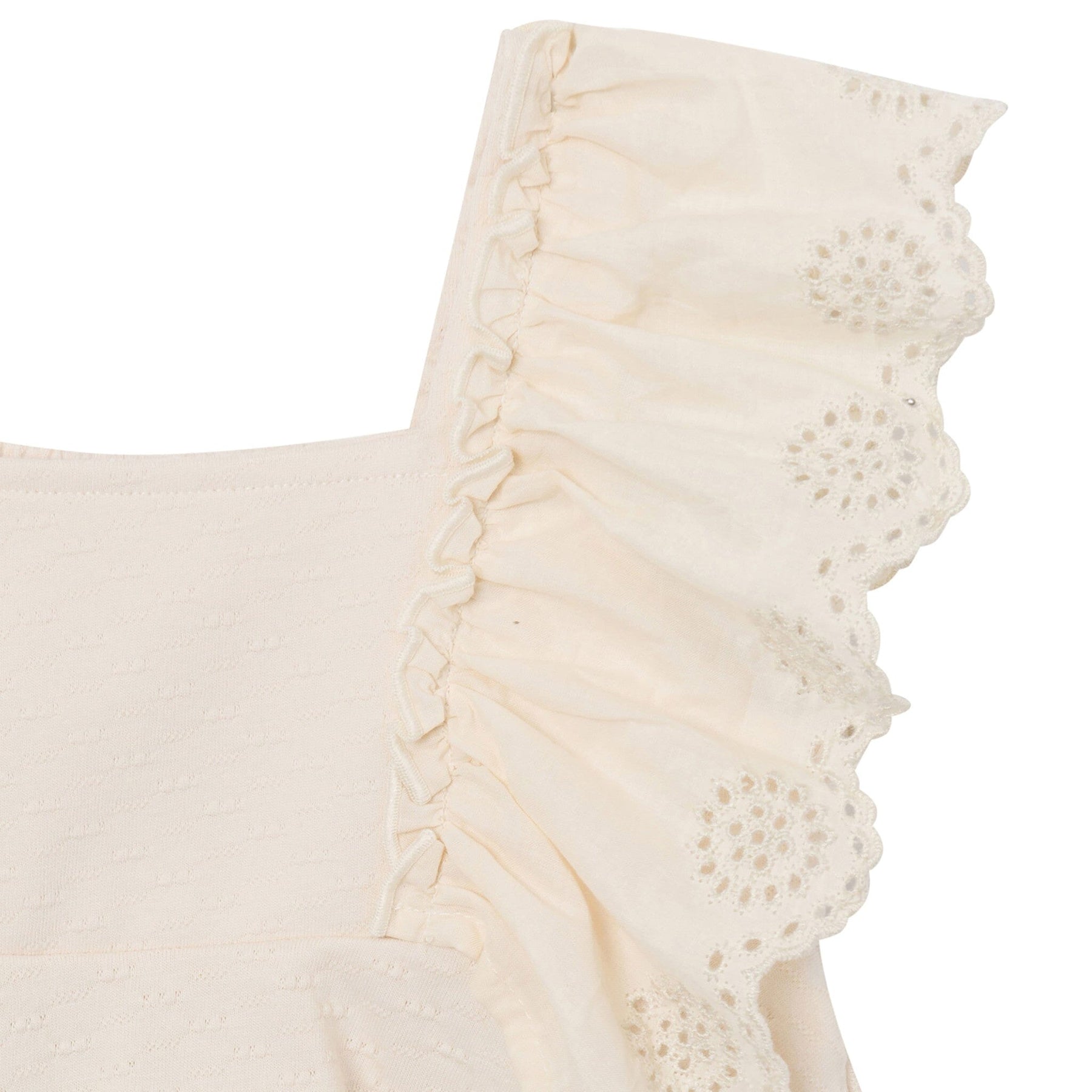 Let her shine in this adorable, coordinated set! The top features playful ruffled sleeves and delicate scallop flower eyelet embroidery, while the shorts offer a stretchy comfort waistband for unrestricted movement. Made entirely from 100% cotton popcorn jersey, this light gray outfit delivers a soft, breathable feel that's perfect for sensitive skin. The distinctive textured knit adds visual charm, making it ideal for warm-weather outings and playtime. Easy care—just toss in the wash and tumble dry! Our essentials have been independently certified with STANDARD 100 by OEKO-TEX® so that you don’t have to worry about harmful substances in your little one’s wardrobe.