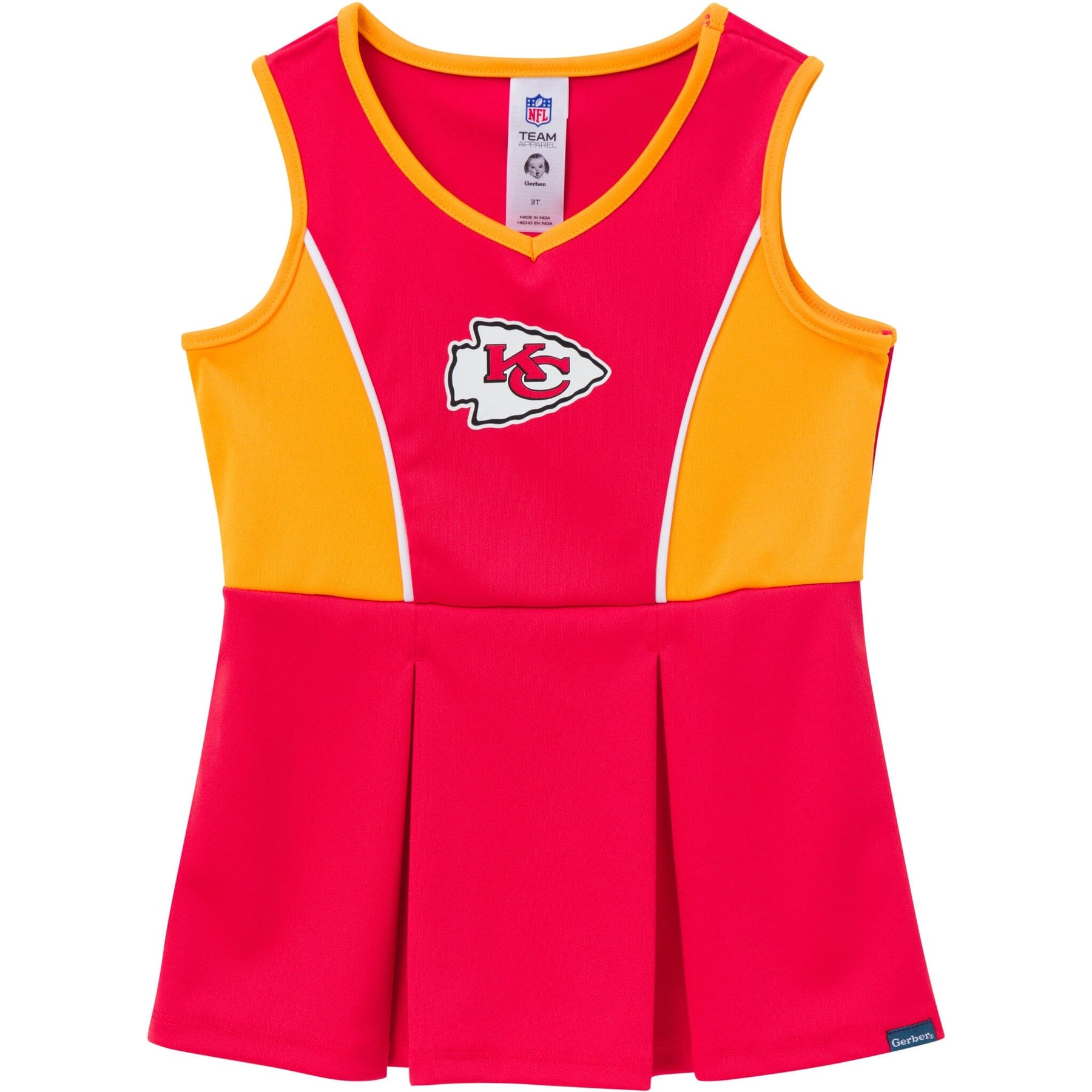 Your little one will be ready to cheer on the Chiefs in this spirited cheer dress and diaper cover set! Made with soft, stretchy interlock fabric, this outfit is as comfy as it is cute. The pullover-style dress makes dressing easy, and the diaper cover has a flexible waistband and leg openings for a comfy fit that moves with her. Finished with a bold Kansas City Chiefs logo at the center, it’s the perfect look for your tiniest fan to show off her team pride. Our essentials are independently certified with STANDARD 100 by OEKO-TEX, so you don’t have to worry about harmful substances in your little one's wardrobe. Includes dress and matching diaper cover.