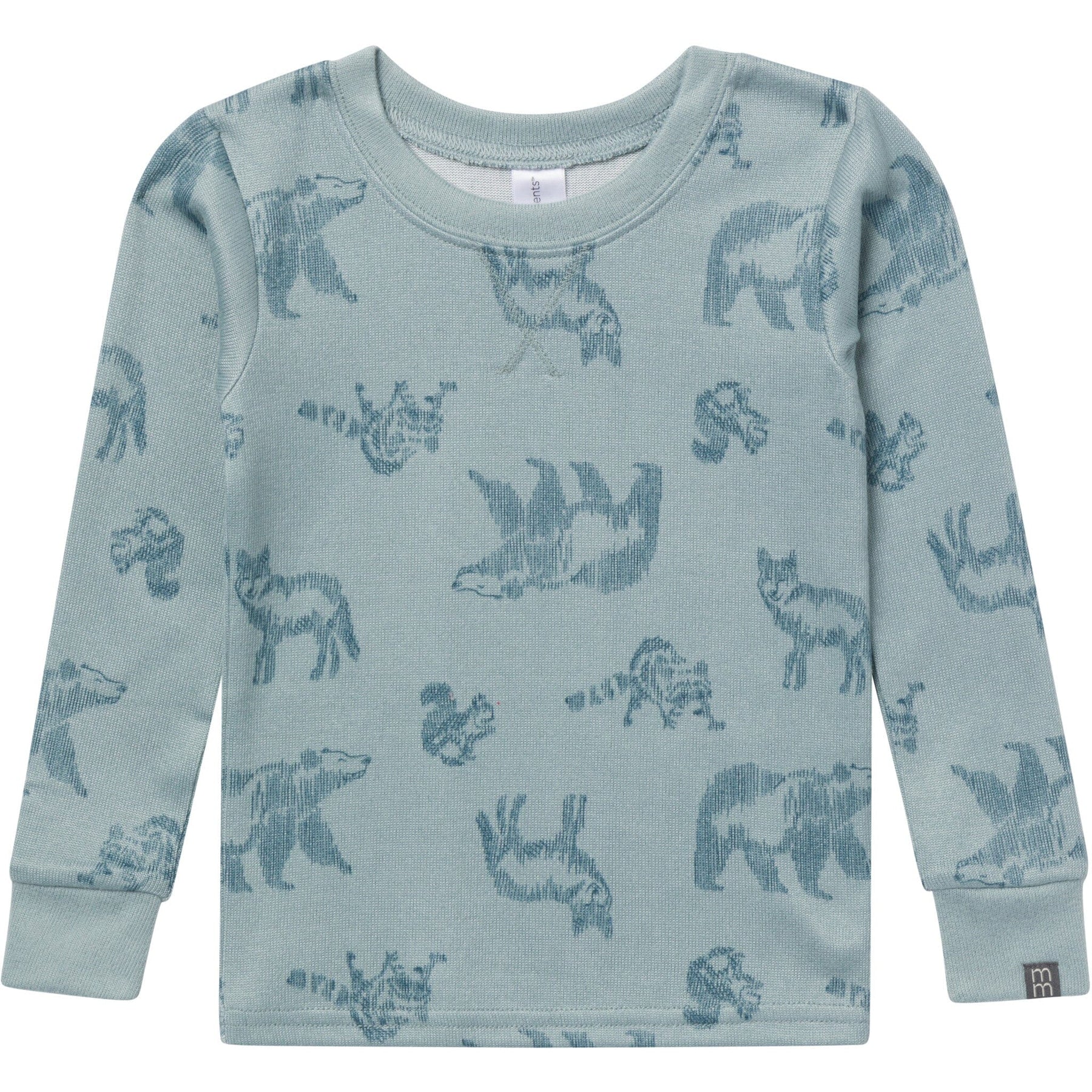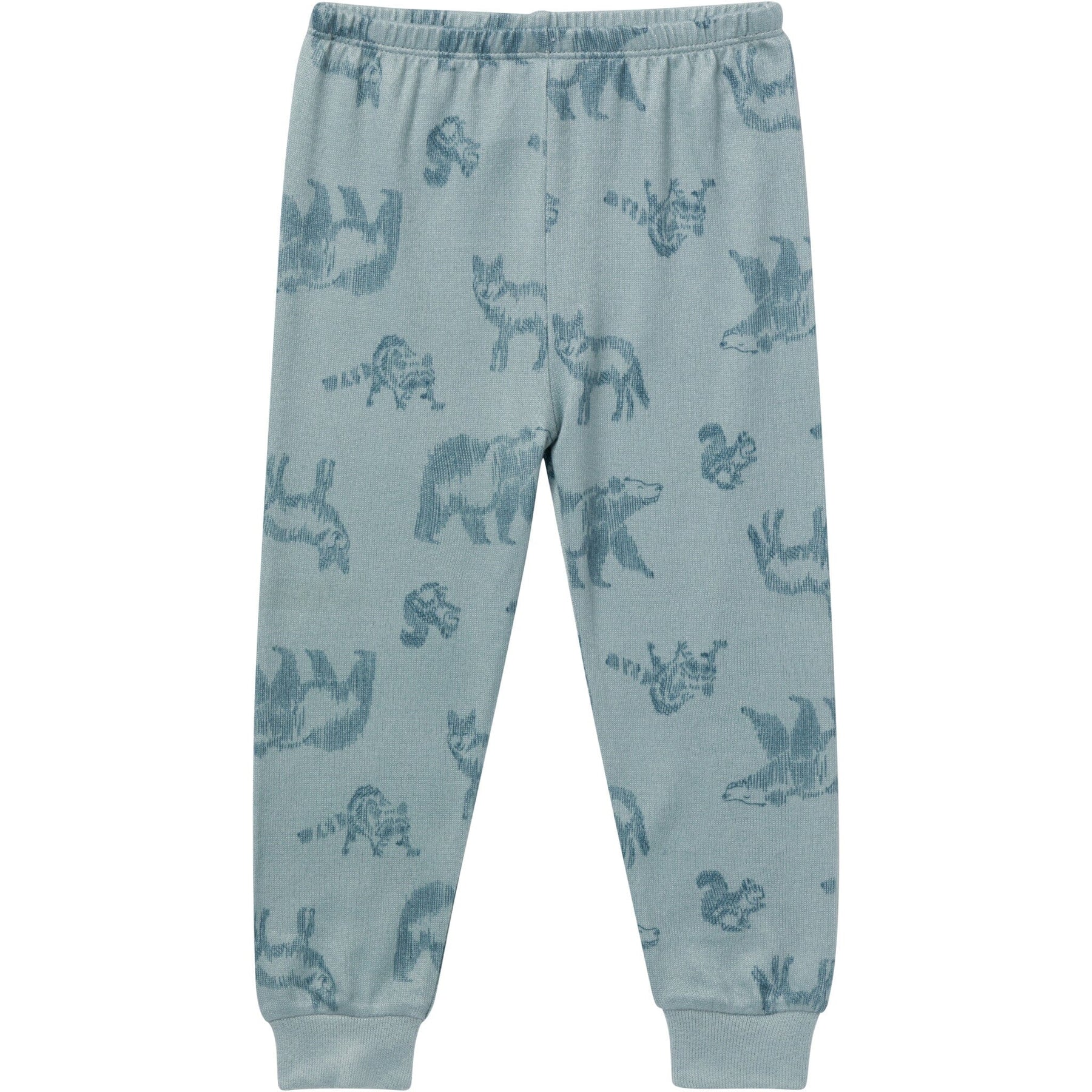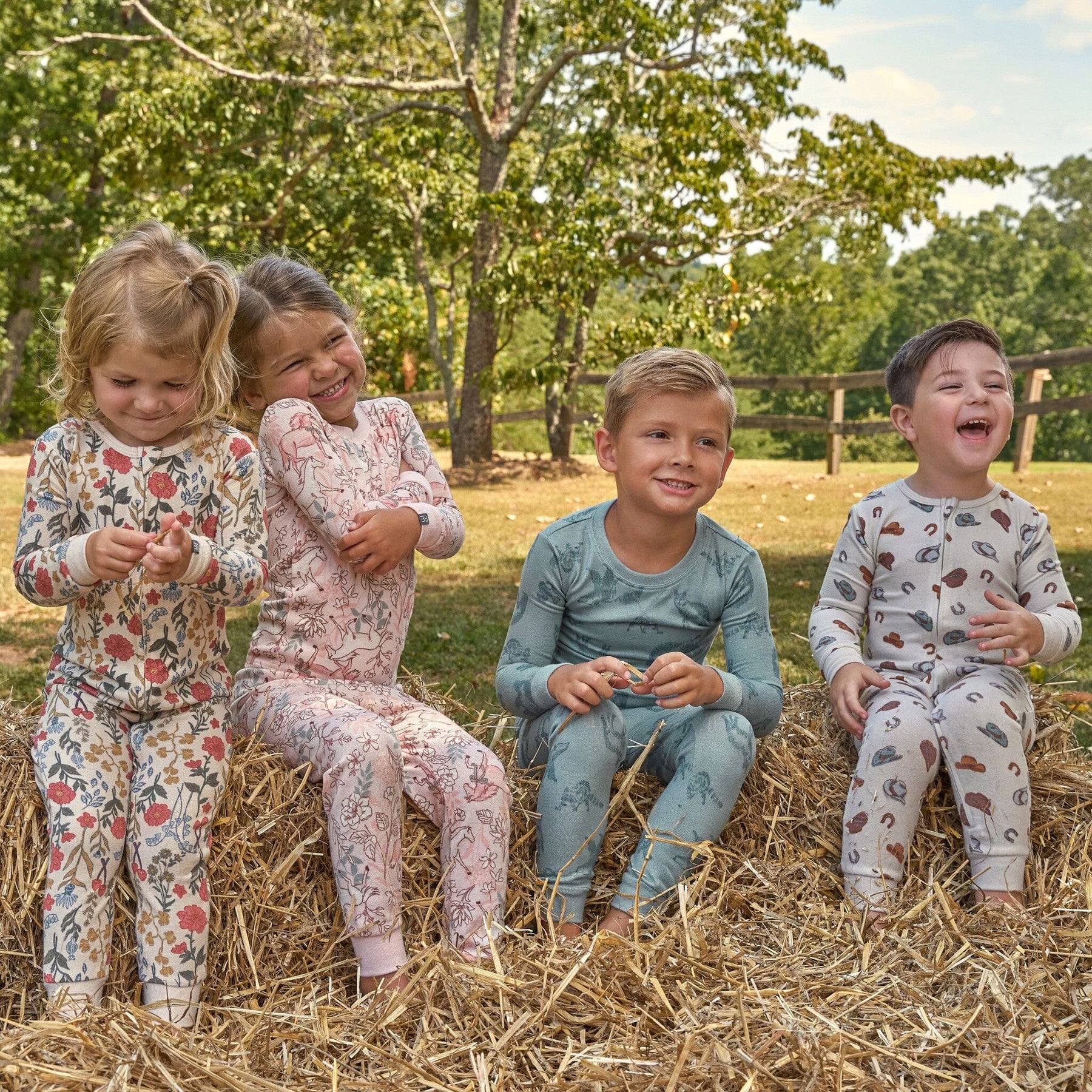 These snug-fitting pajamas are crafted from exceptionally soft hacci jersey knit, wrapping him in breathable warmth and softness for a restful night. Designed with safety in mind, the close fit hugs gently while allowing comfortable movement. Cinched wrists and ankles keep the cozy feel in place through every twist and turn. Finished in a calming light blue with a playful forest animal print, this set brings a touch of outdoor adventure to bedtime snuggles. Our essentials have been independently certified with STANDARD 100 by OEKO-TEX® so that you don’t have to worry about harmful substances in your little one's wardrobe. Pack includes two-piece pajama set from modern moments™ by Gerber®.