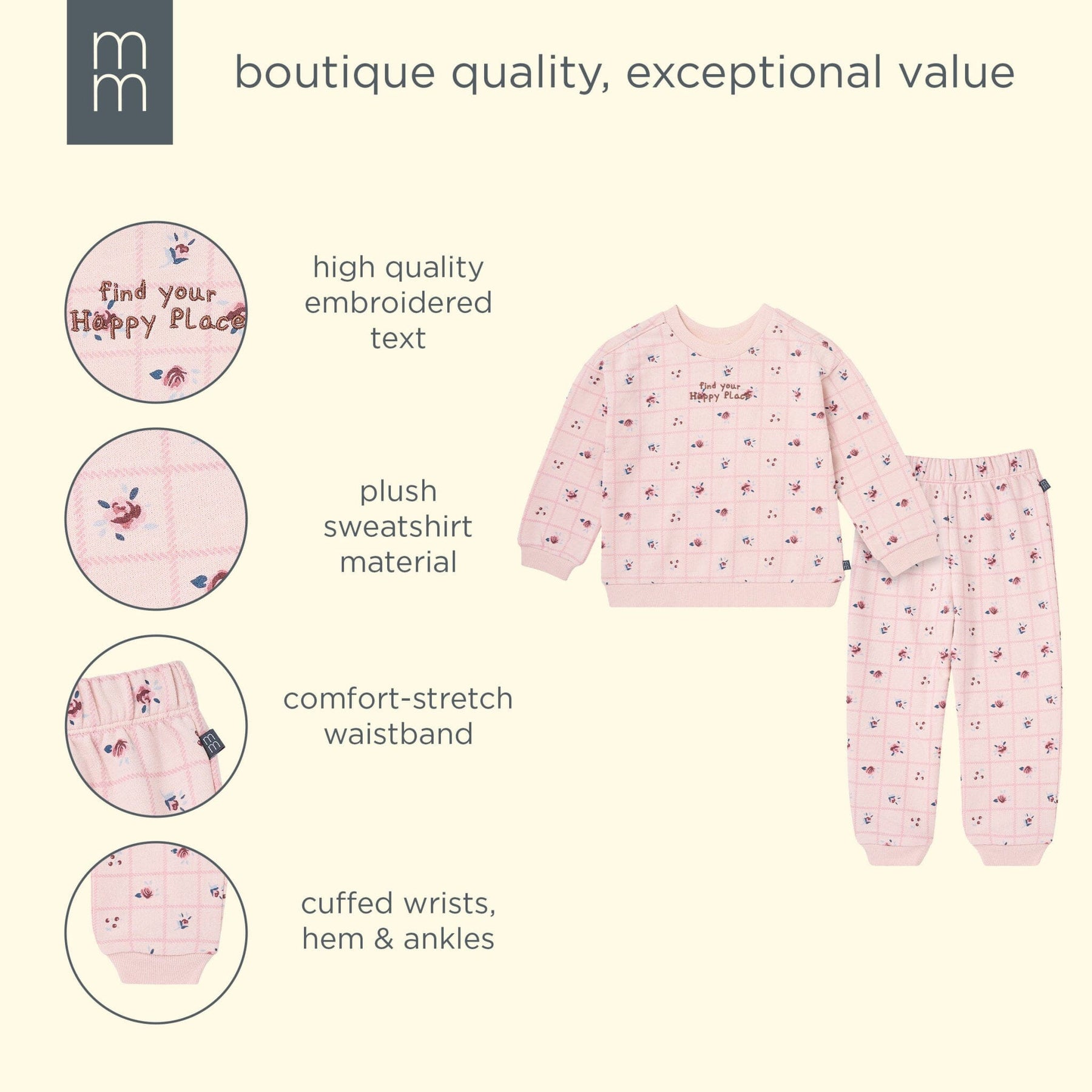 Soft, flexible, and thoughtfully designed, this sweatshirt and jogger set is made to move with her. The light pink floral check set features a subtle stretch for all-day comfort and a drop shoulder silhouette that layers easily over tees for extra warmth. It’s a cozy, stylish outfit in sizes 12M to size 7—perfect for playdates, school, or special days out. Our essentials have been independently certified with STANDARD 100 by OEKO-TEX® so that you don’t have to worry about harmful substances in your little one's wardrobe. Pack includes sweatshirt and sweatpants set from modern moments™ by Gerber®.