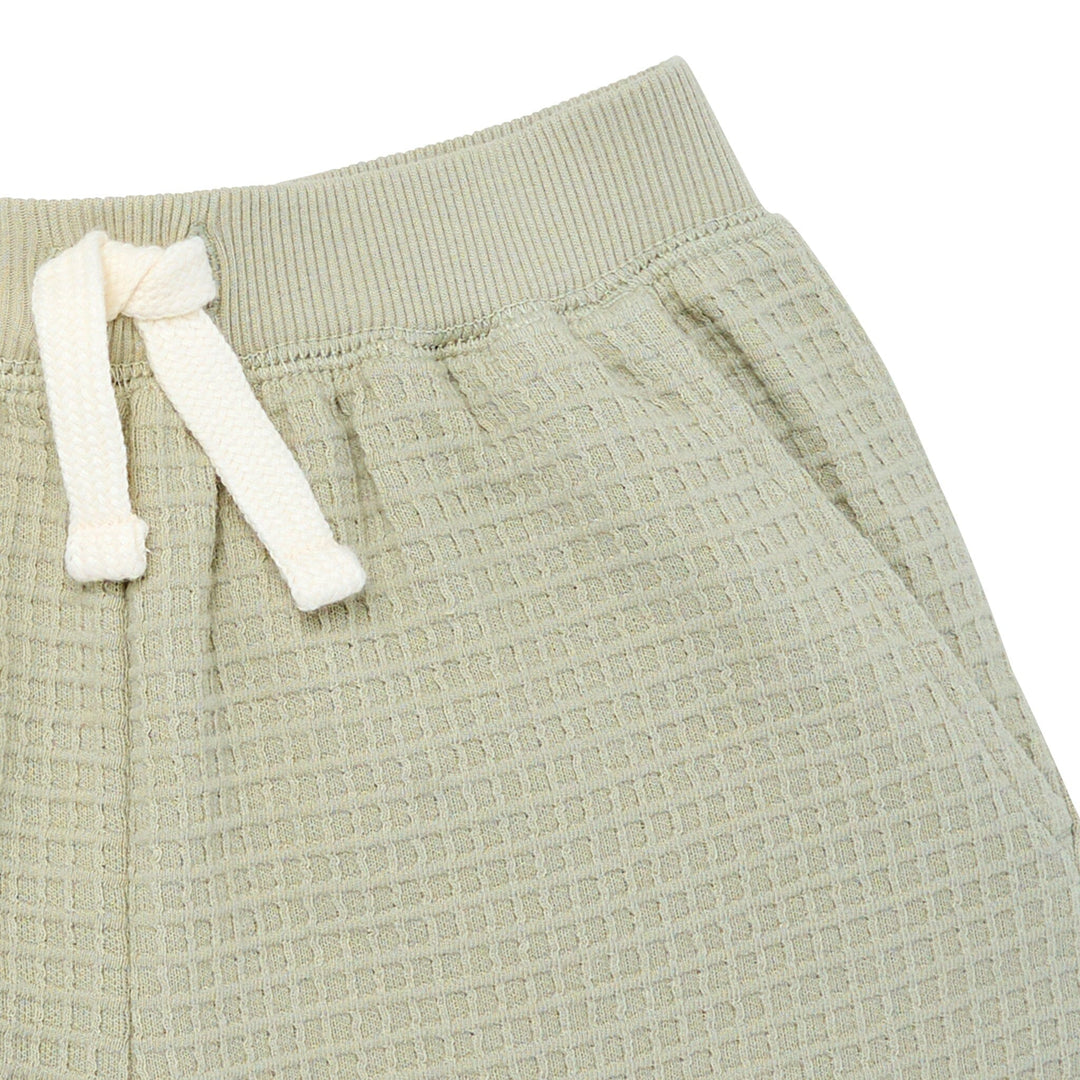 • Top and Shorts: 100% cotton box waffle Trims: 2x2 rib 97% cotton, 3% spandex