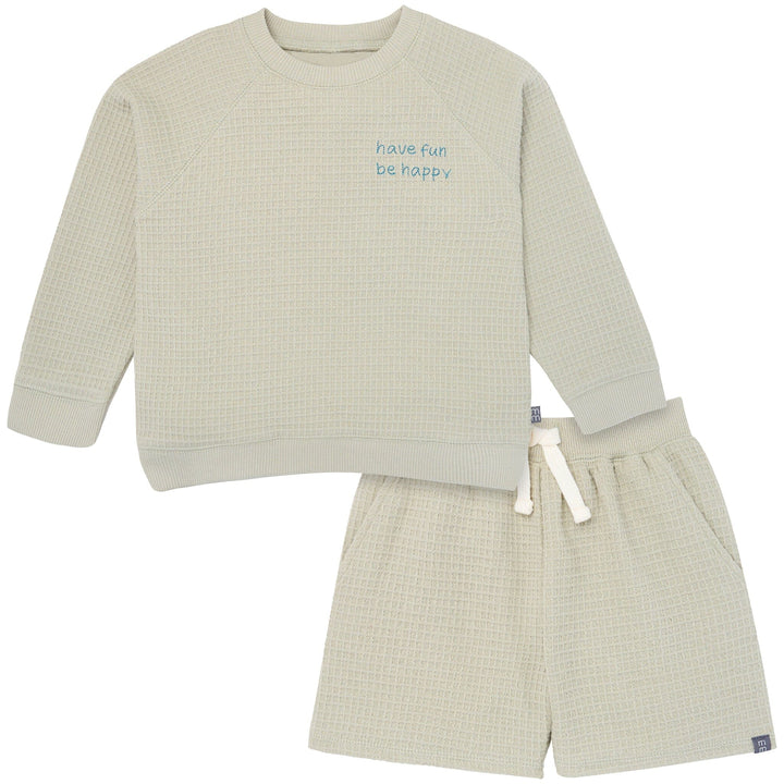 2-Piece Infant & Toddler Boys Light Green Long Sleeve Top and Shorts Set