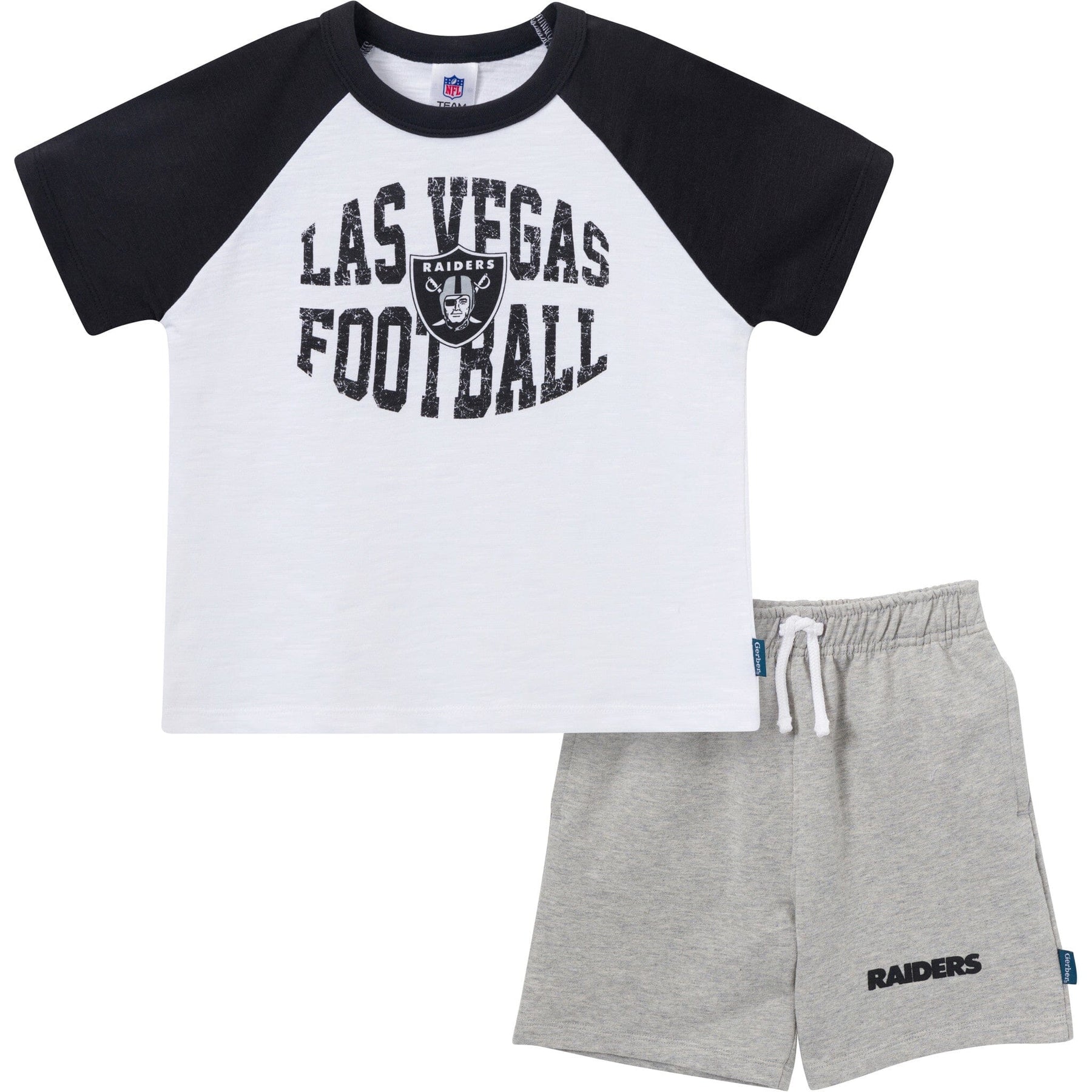 Bring that Raiders energy wherever they go! This short-sleeve t-shirt and shorts set is made with soft cotton and a touch of spandex to keep your little one moving comfortably. The comfort-stretch waistband on the shorts provides a perfect fit, and the team logo on the shirt is a stylish nod to their favorite team. Whether it’s playtime or rooting for the Raiders, this set is all about fun, flexibility, and a little bit of boldness. Our essentials are independently certified with STANDARD 100 by OEKO-TEX, so you don’t have to worry about harmful substances in your little one's wardrobe. Includes t-shirt and matching shorts.