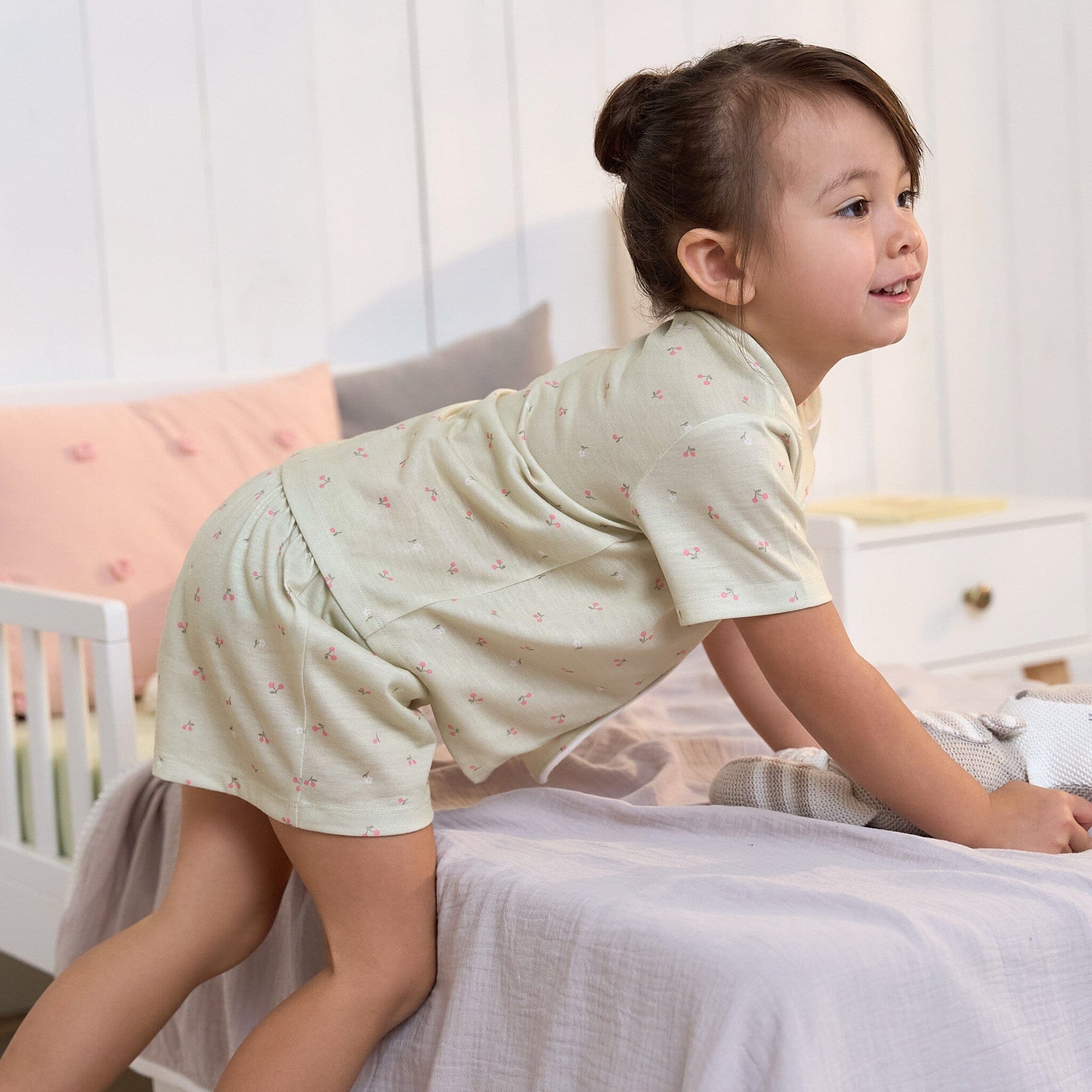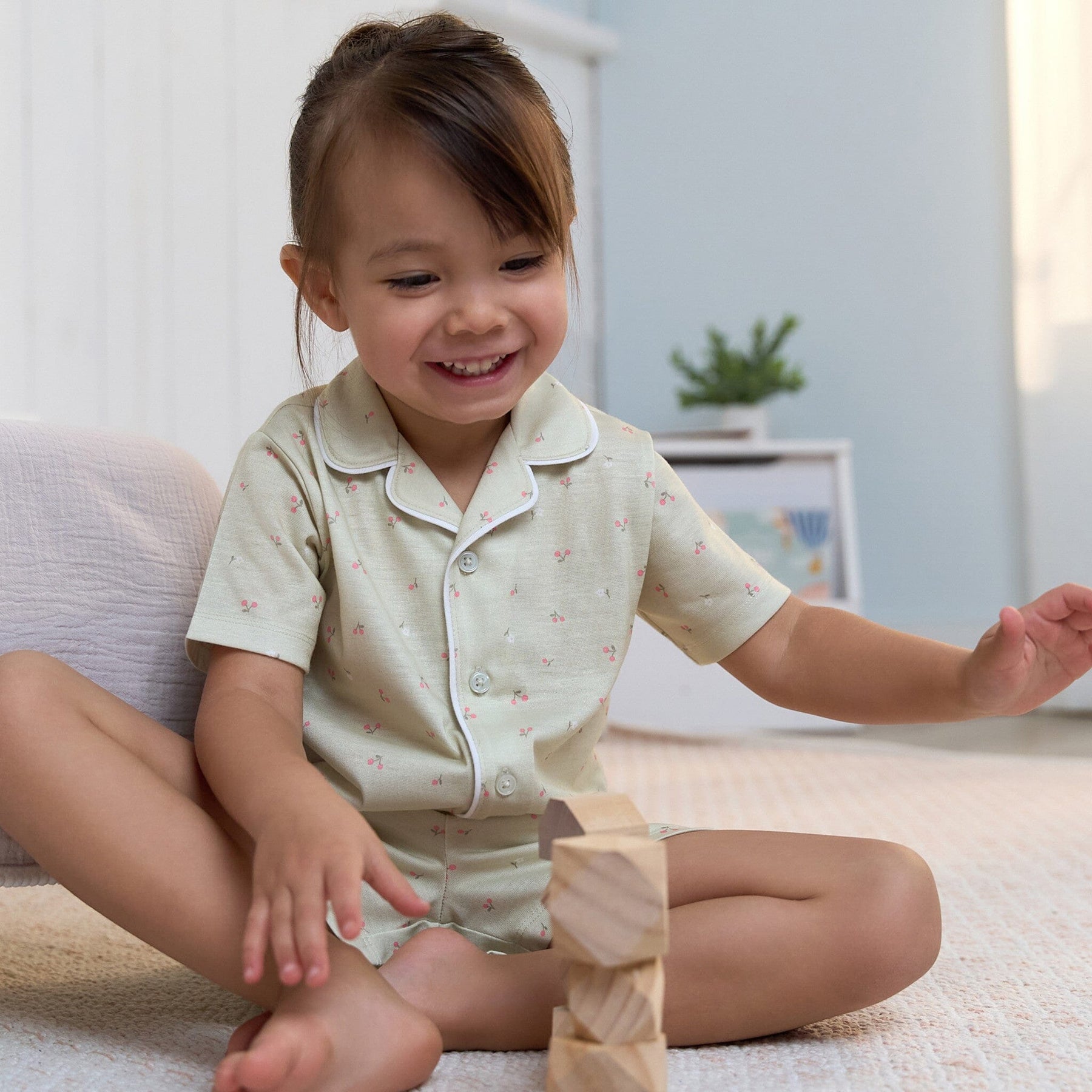 2-Piece Infant & Toddler Girls Cherries Button Up Pajama Shorts Set