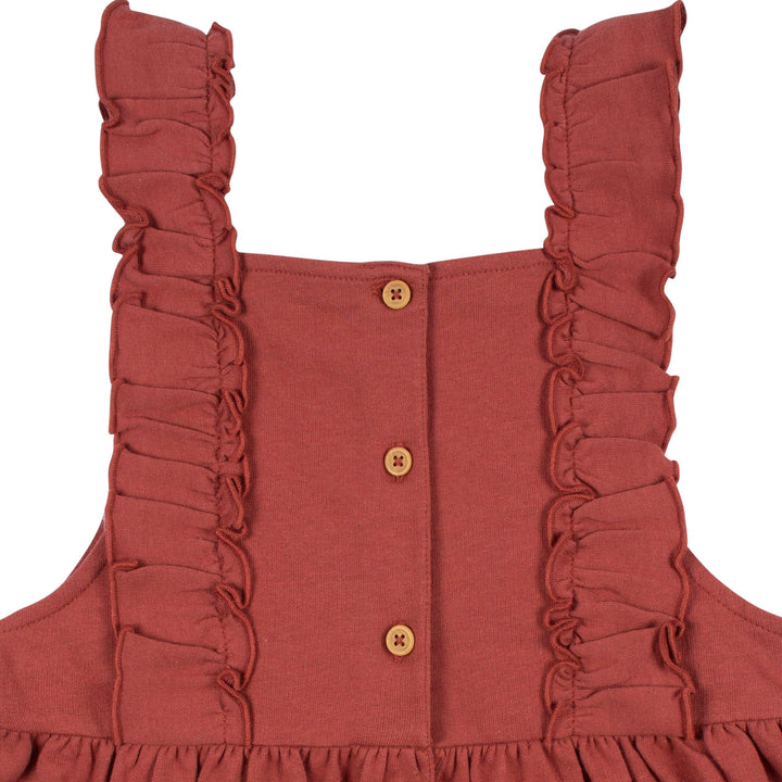This fall themed, two-piece outfit will keep your baby girl warm and cozy all season long. Features an adorable jumper and matching, long sleeve t-shirt for a complete look. The jumper is made from a warm cotton and polyester blend, while the shirt is made from a slightly stretchy cotton to be gentle on sensitive skin. This picture-perfect outfit is equally great for special occasions or just running daily errands. Our essentials have been independently certified with STANDARD 100 by OEKO-TEX® so that you don’t have to worry about harmful substances in your baby’s wardrobe. This two piece set includes one orange jumper and one long sleeve shirt with matching falling leaves pattern.