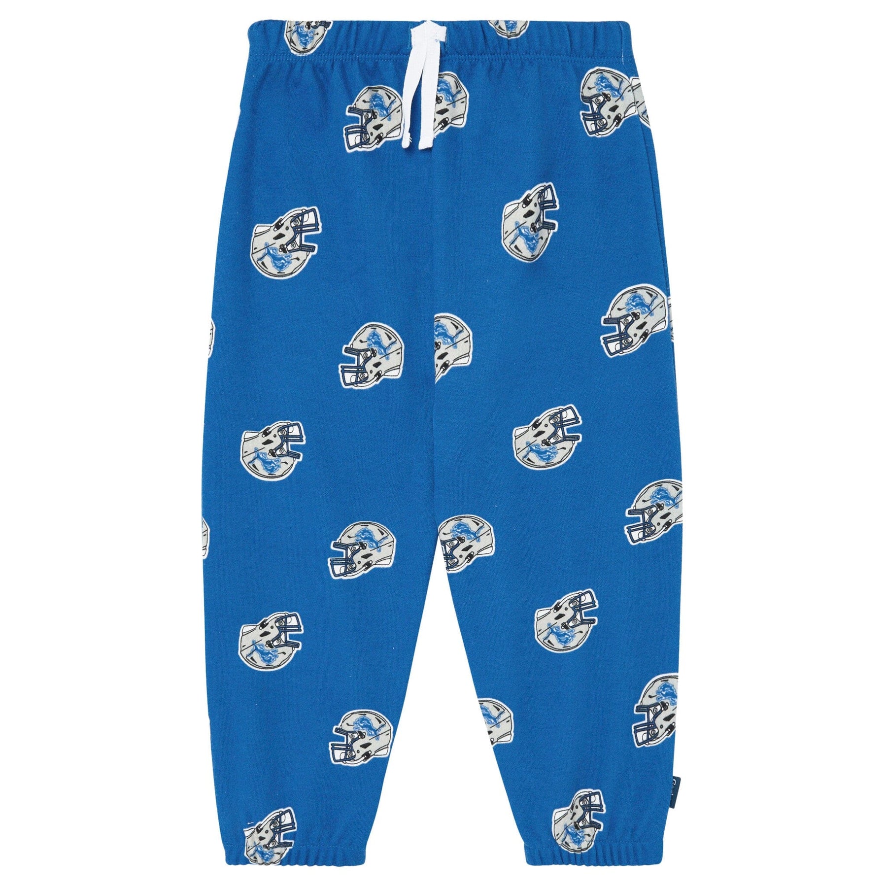 For cooler game days, this Lions fleece set is the perfect pick! Made with thick fleece to keep them warm, the ribbed trim at the neckline, wrists, hem, and ankles ensures a comfy, flexible fit. The drop-shoulder sweatshirt has a relaxed, easy-to-layer style, and the allover helmet print shows off their Lions pride in the coolest way. Our essentials are independently certified with STANDARD 100 by OEKO-TEX, so you don’t have to worry about harmful substances in your little one's wardrobe. Includes matching sweatshirt and pants set.