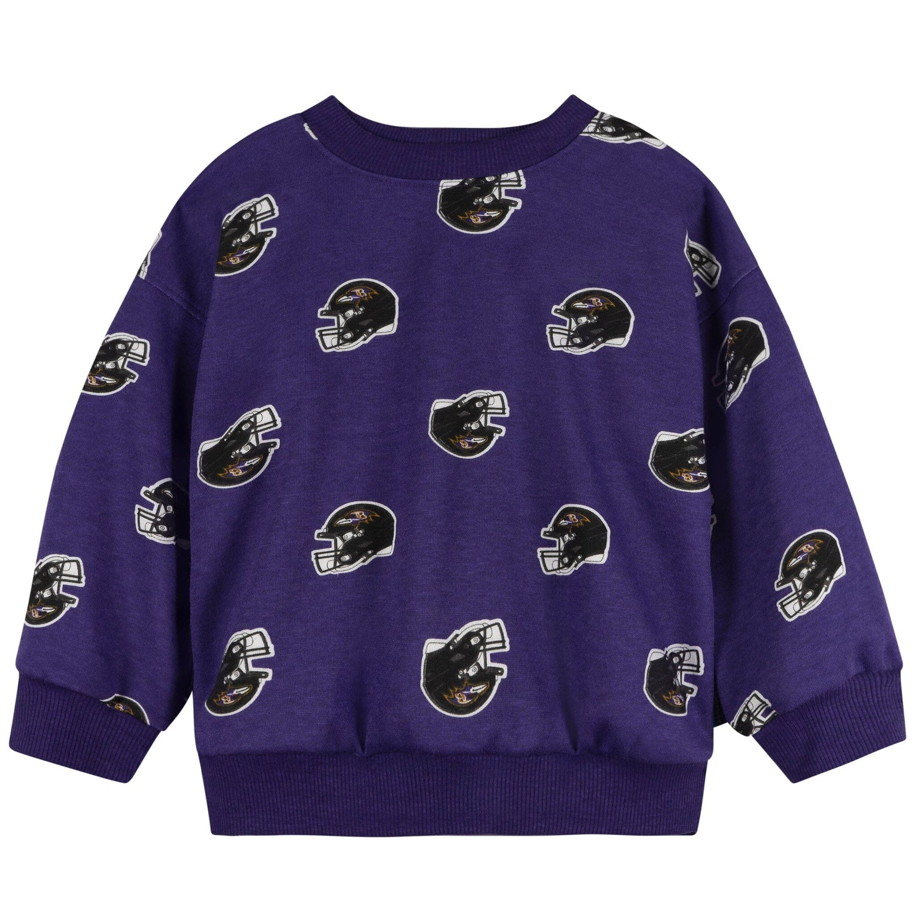Bundle up your little Ravens fan with this cozy fleece set! Made with thick fleece to keep them warm, ribbed trim at the neckline, wrists, hem, and ankles provides a flexible and comfortable fit. The drop-shoulder sweatshirt has a relaxed, easy-to-layer style, and the allover helmet print adds a cool Ravens touch. Our essentials are independently certified with STANDARD 100 by OEKO-TEX, so you don’t have to worry about harmful substances in your little one's wardrobe. Includes matching sweatshirt and pants set.